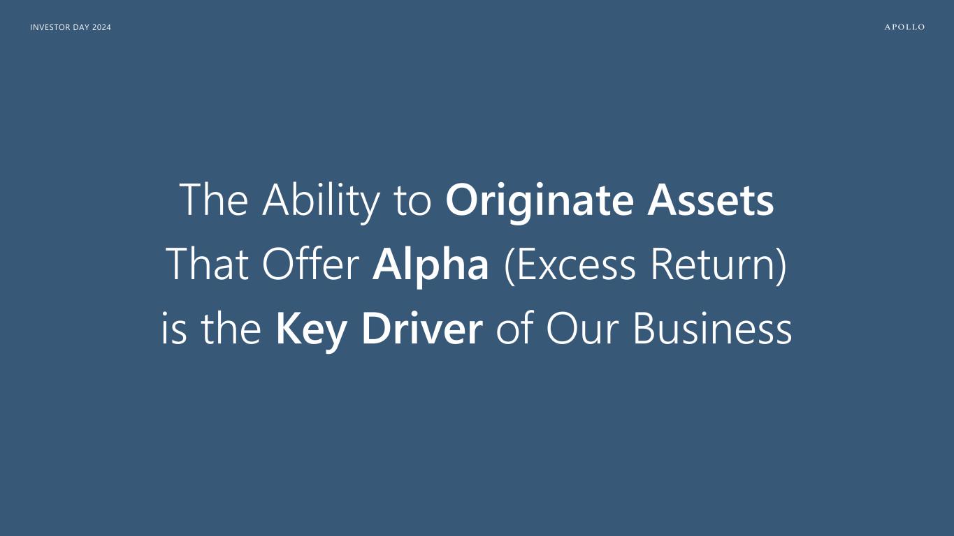 INVESTOR DAY 2024 The Ability to Originate Assets That Offer Alpha (Excess Return) is the Key Driver of Our Business