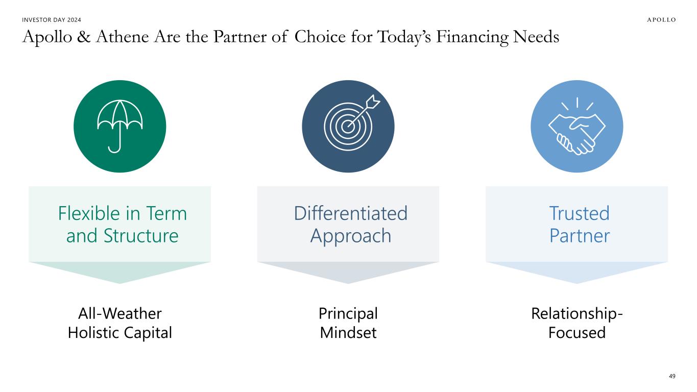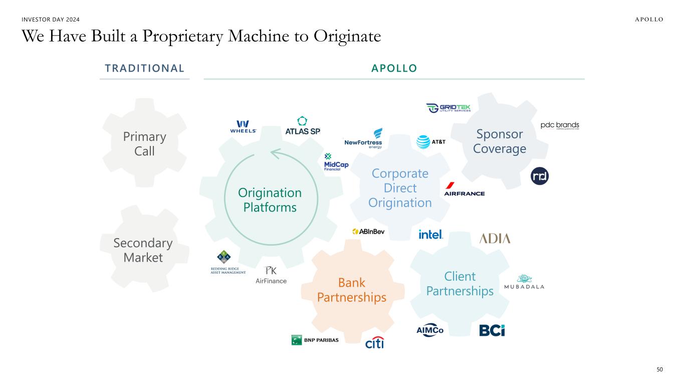 INVESTOR DAY 2024 Apollo & Athene Are the Partner of Choice for Today’s Financing Needs 49 Principal Mindset Relationship- Focused All-Weather Holistic Capital Flexible in Term and Structure Differentiated Approach Trusted Partner