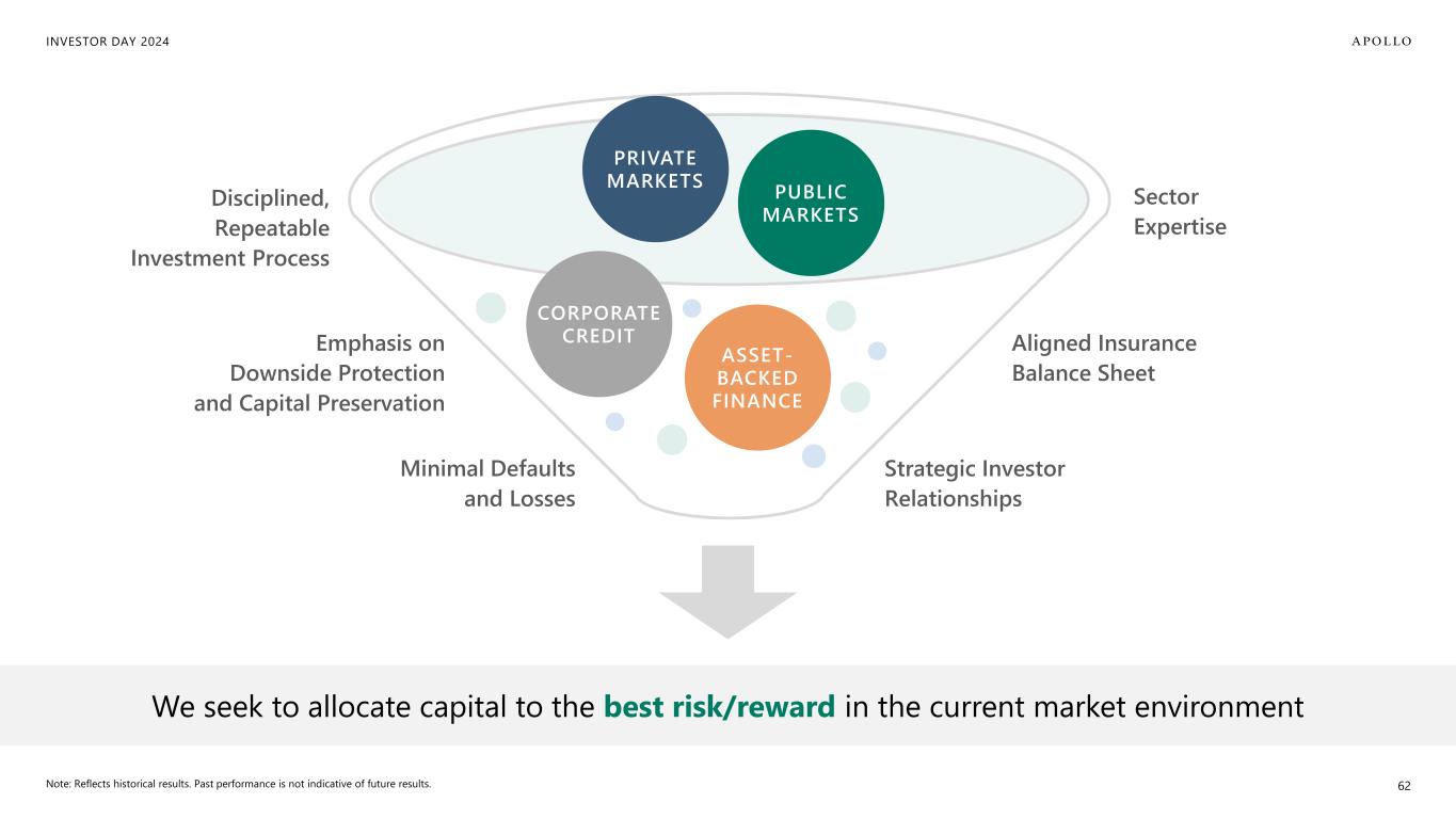 INVESTOR DAY 2024 61 ~550 Sponsor Relationships ~3,900 Issuers Covered $134B Total Credit Trading Volume ~4,000 Originators 16 Origination Platforms $151B Debt Origination (2Q’24 LTM) Note: All figures sourced as of June 30, 2024. Origination platforms are portfolio companies of funds managed by Apollo.