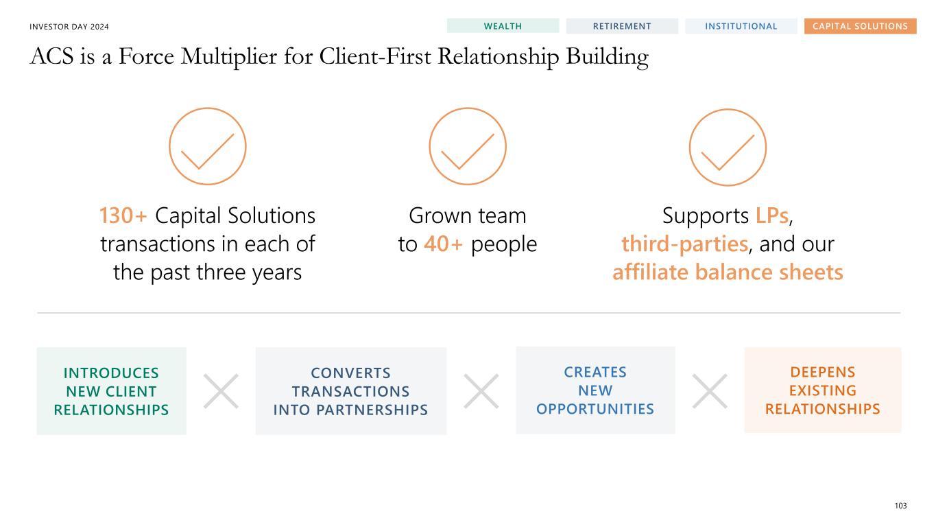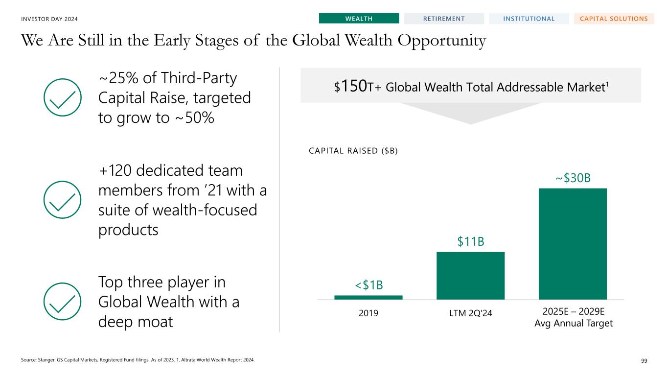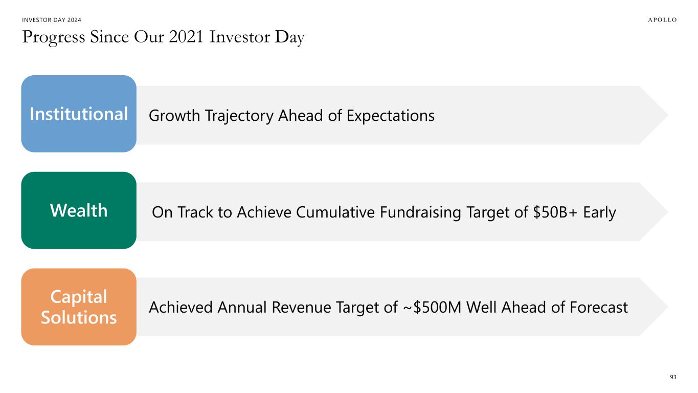 INVESTOR DAY 2024 Progress Since Our 2021 Investor Day 93 Capital Solutions Achieved Annual Revenue Target of ~$500M Well Ahead of Forecast Wealth On Track to Achieve Cumulative Fundraising Target of $50B+ Early Institutional Growth Trajectory Ahead of Expectations