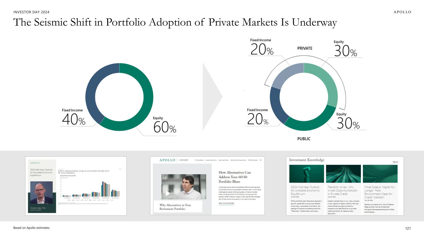 INVESTOR DAY 2024 The Seismic Shift in Portfolio Adoption of Private Markets Is Underway Based on Apollo estimates. 121