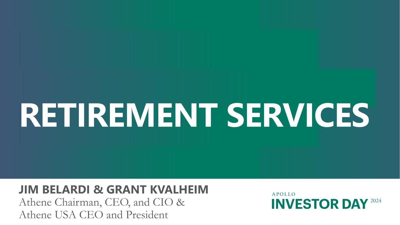 INVESTOR DAY 2024 RETIREMENT SERVICES JIM BELARDI & GRANT KVALHEIM Athene Chairman, CEO, and CIO & Athene USA CEO and President