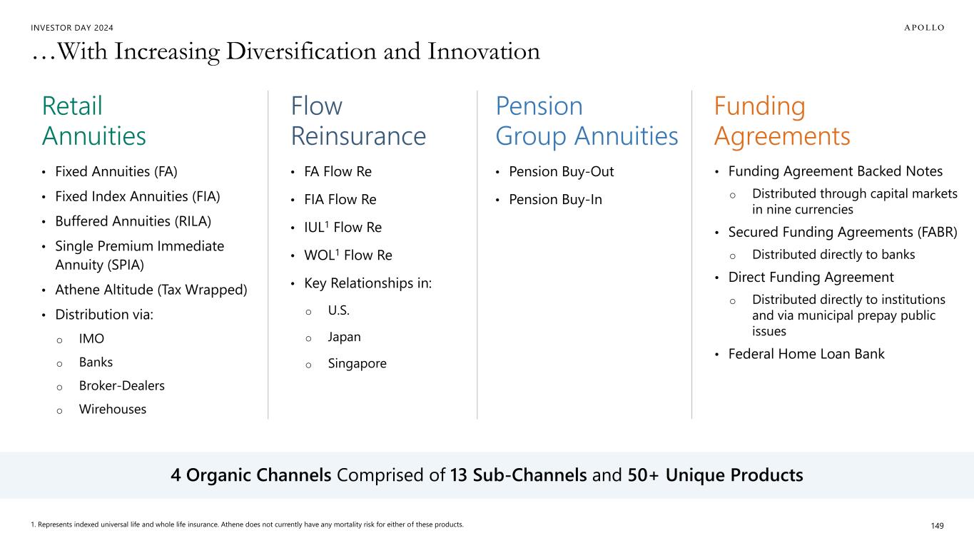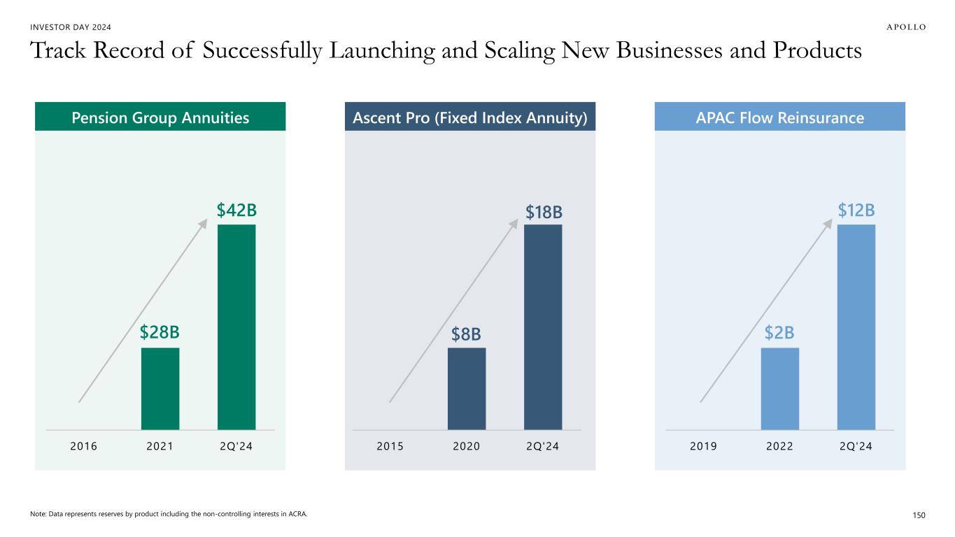 INVESTOR DAY 2024 Track Record of Successfully Launching and Scaling New Businesses and Products Note: Data represents reserves by product including the non-controlling interests in ACRA. 150 Pension Group Annuities Ascent Pro (Fixed Index Annuity) APAC Flow Reinsurance $28B $42B 2016 2021 2Q'24 $8B $18B 2015 2020 2Q'24 $2B $12B 2019 2022 2Q'24