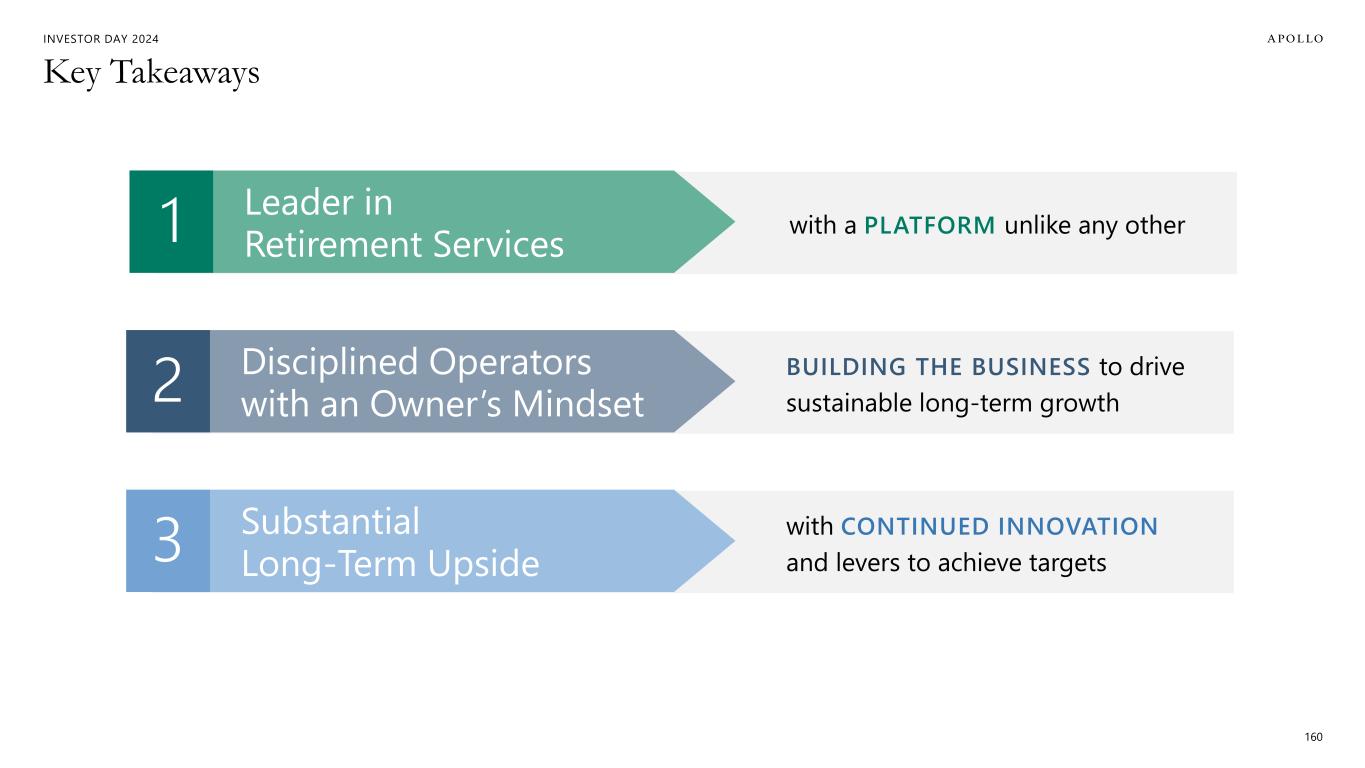 INVESTOR DAY 2024 Key Takeaways 160 with a PLATFORM unlike any other Leader in Retirement Services1 BUILDING THE BUSINESS to drive sustainable long-term growth Disciplined Operators with an Owner’s Mindset2 with CONTINUED INNOVATION and levers to achieve targets Substantial Long-Term Upside3