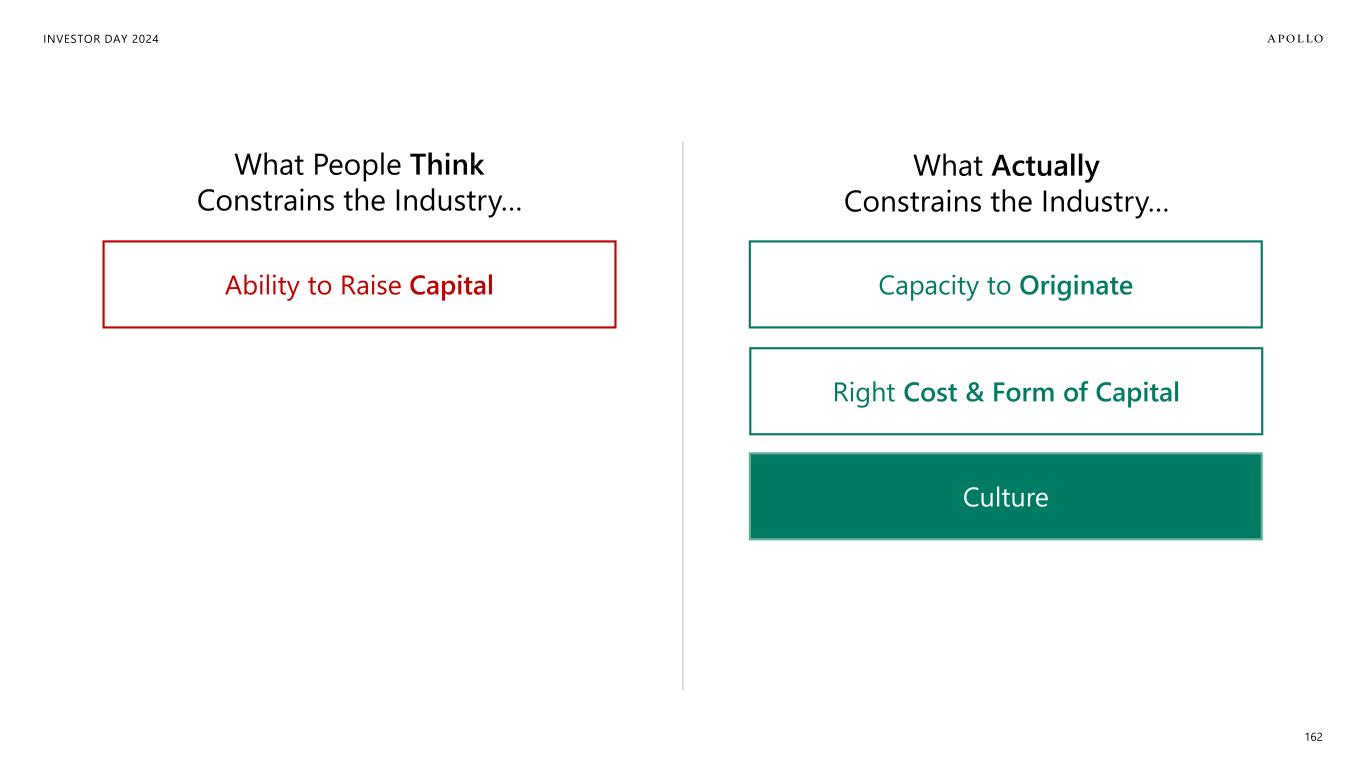 INVESTOR DAY 2024 162 Ability to Raise Capital Right Cost & Form of Capital Culture Capacity to Originate What People Think Constrains the Industry… What Actually Constrains the Industry…