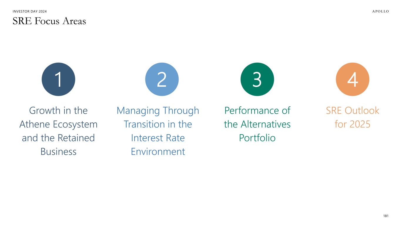 INVESTOR DAY 2024 SRE Focus Areas 181 Growth in the Athene Ecosystem and the Retained Business 1 Managing Through Transition in the Interest Rate Environment 2 Performance of the Alternatives Portfolio 3 SRE Outlook for 2025 4