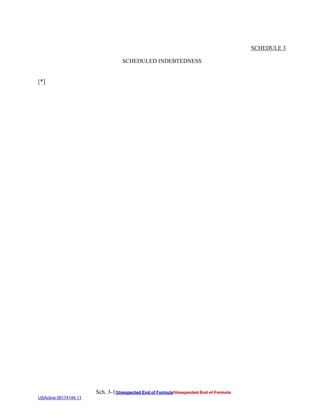 Sch. 3-1!Unexpected End of Formula!Unexpected End of Formula USActive 59174144.11 SCHEDULE 3 SCHEDULED INDEBTEDNESS [*]