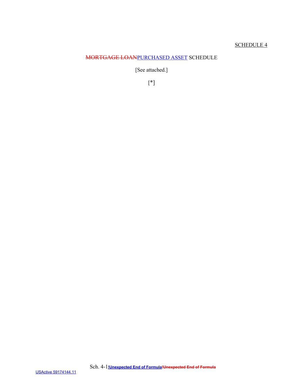 Sch. 4-1!Unexpected End of Formula!Unexpected End of Formula USActive 59174144.11 SCHEDULE 4 MORTGAGE LOANPURCHASED ASSET SCHEDULE [See attached.] [*]