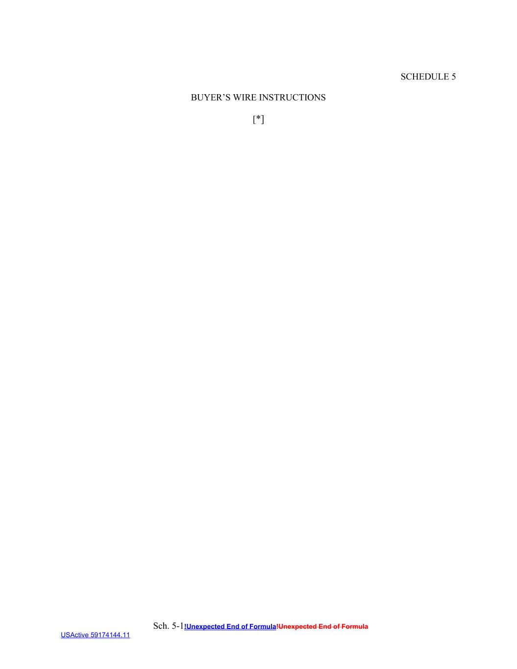 Sch. 5-1!Unexpected End of Formula!Unexpected End of Formula USActive 59174144.11 SCHEDULE 5 BUYER’S WIRE INSTRUCTIONS [*]