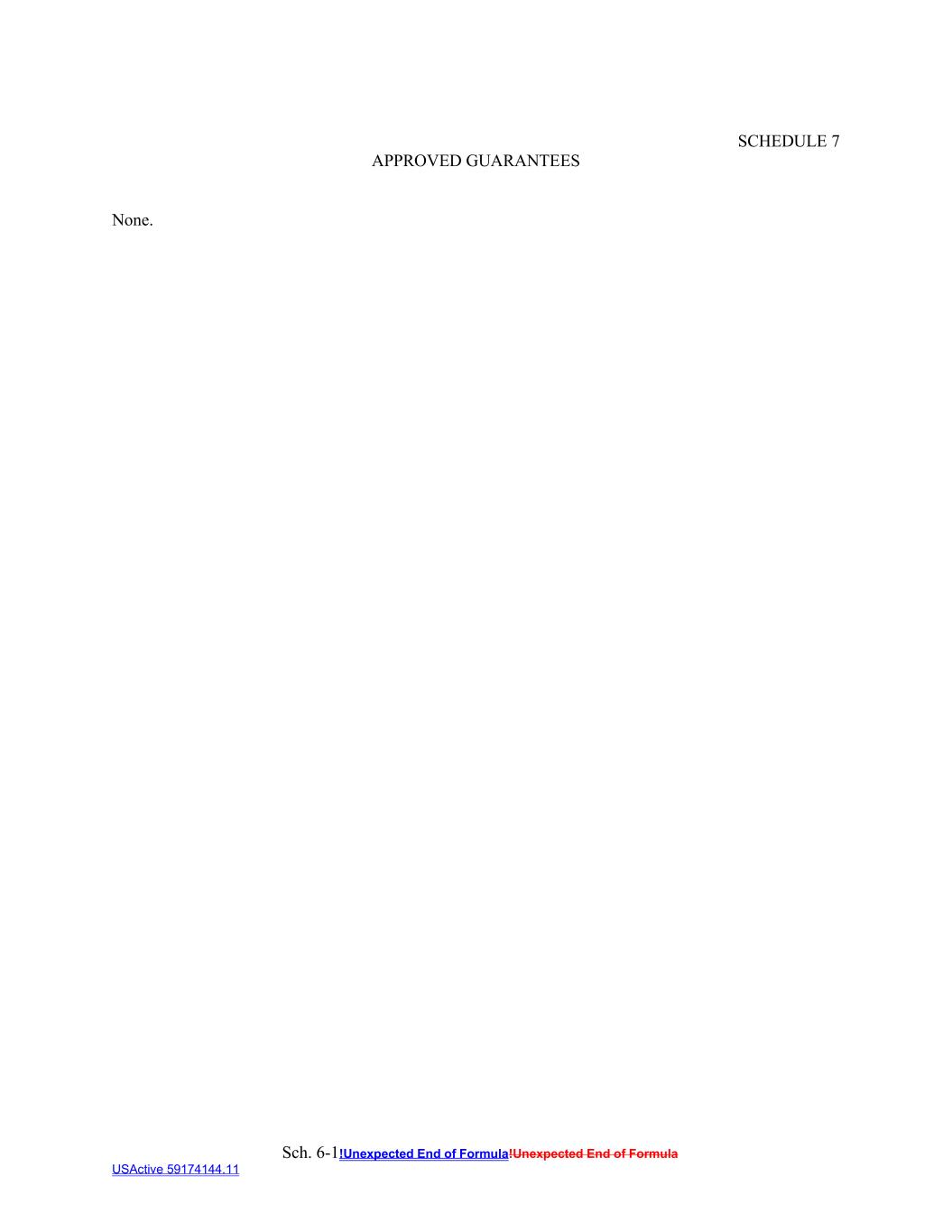 Sch. 6-1!Unexpected End of Formula!Unexpected End of Formula USActive 59174144.11 SCHEDULE 7 APPROVED GUARANTEES None.