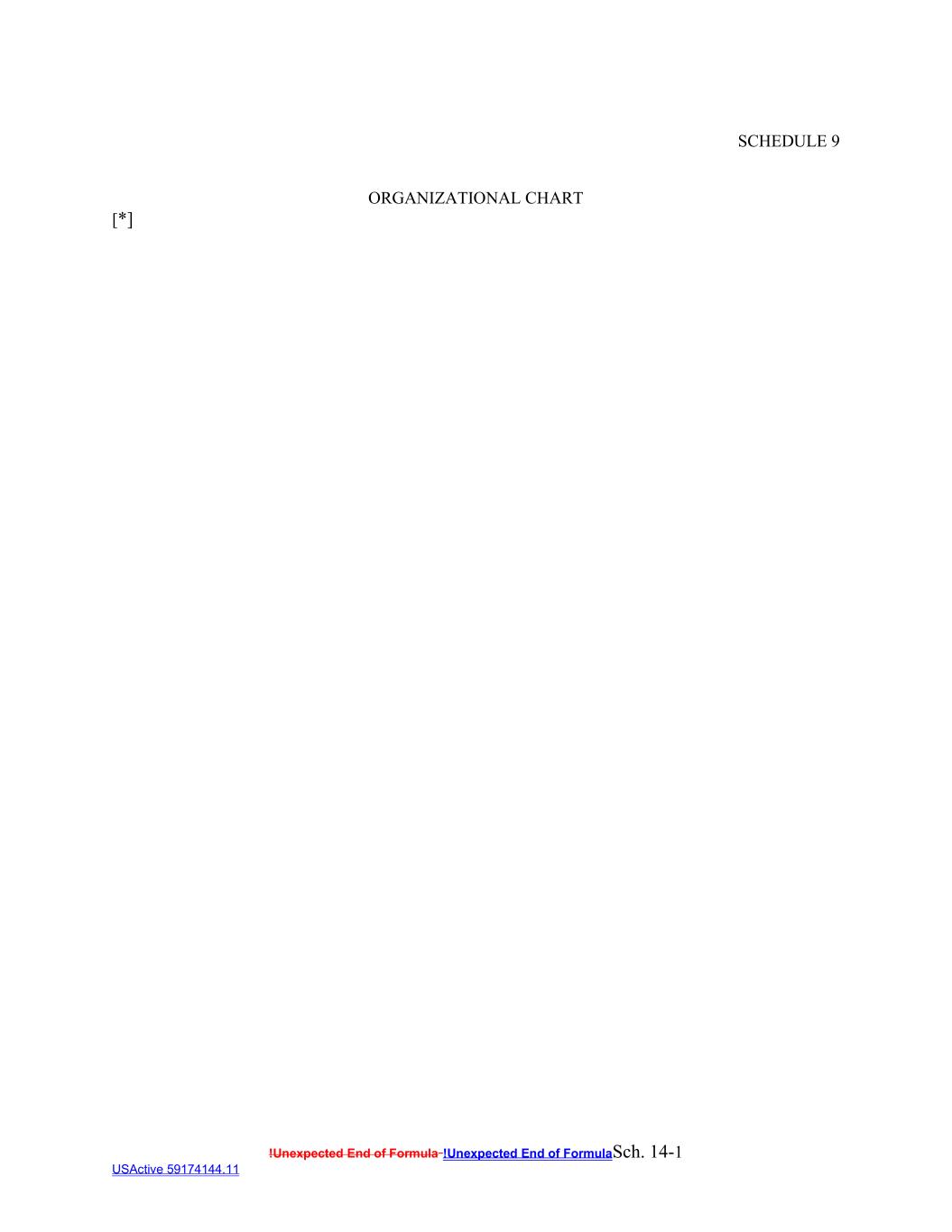 !Unexpected End of Formula !Unexpected End of FormulaSch. 14-1 USActive 59174144.11 SCHEDULE 9 ORGANIZATIONAL CHART [*]