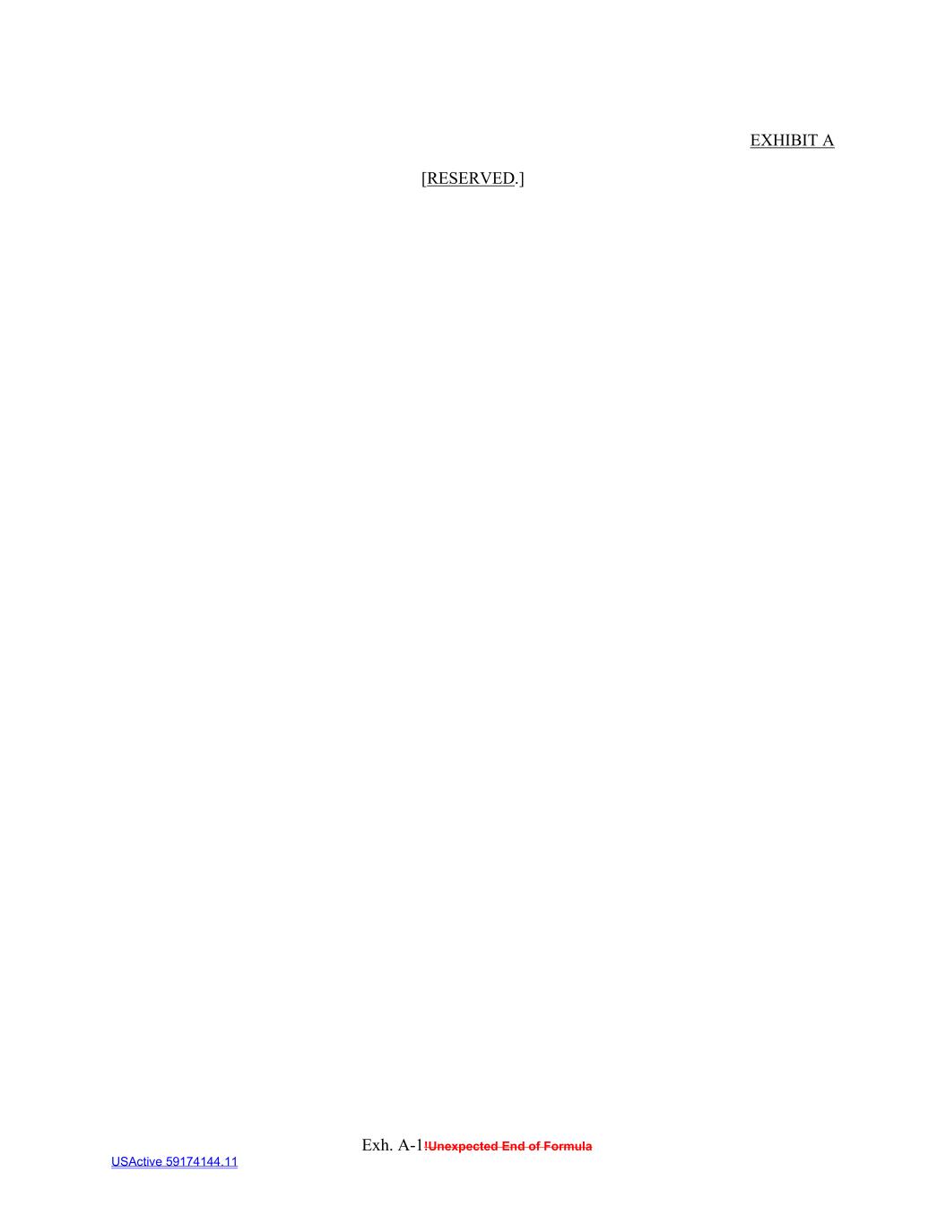 Exh. A-1!Unexpected End of Formula USActive 59174144.11 EXHIBIT A [RESERVED.]