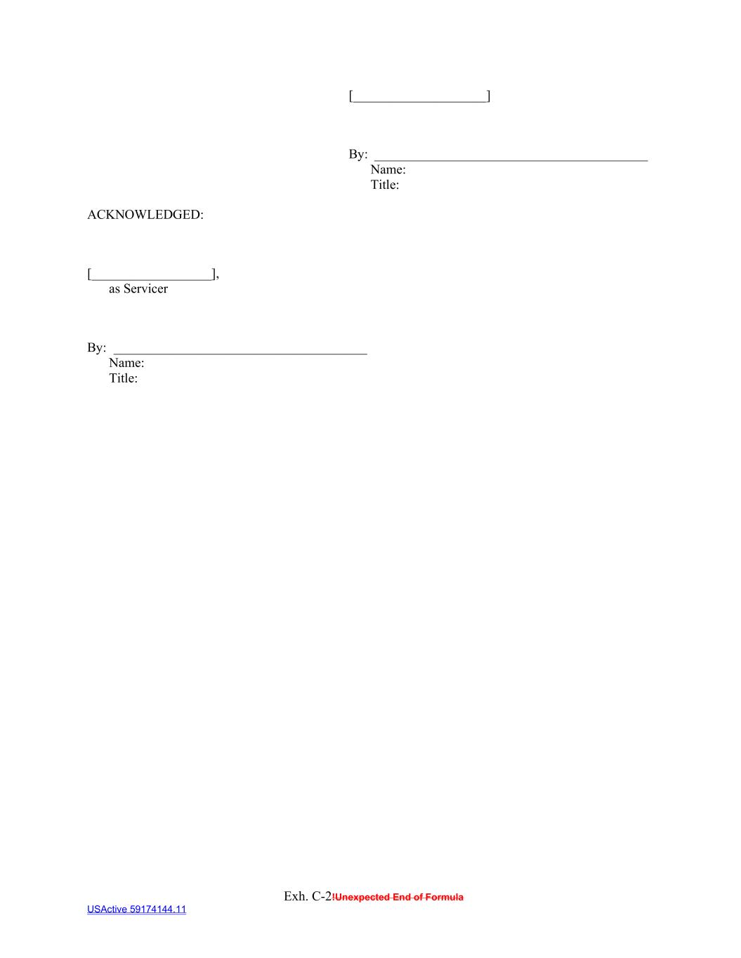 Exh. C-2!Unexpected End of Formula USActive 59174144.11 [____________________] By: _________________________________________ Name: Title: ACKNOWLEDGED: [__________________], as Servicer By: ______________________________________ Name: Title:
