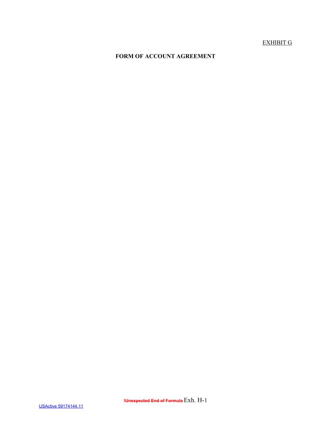 !Unexpected End of Formula Exh. H-1 USActive 59174144.11 EXHIBIT G FORM OF ACCOUNT AGREEMENT