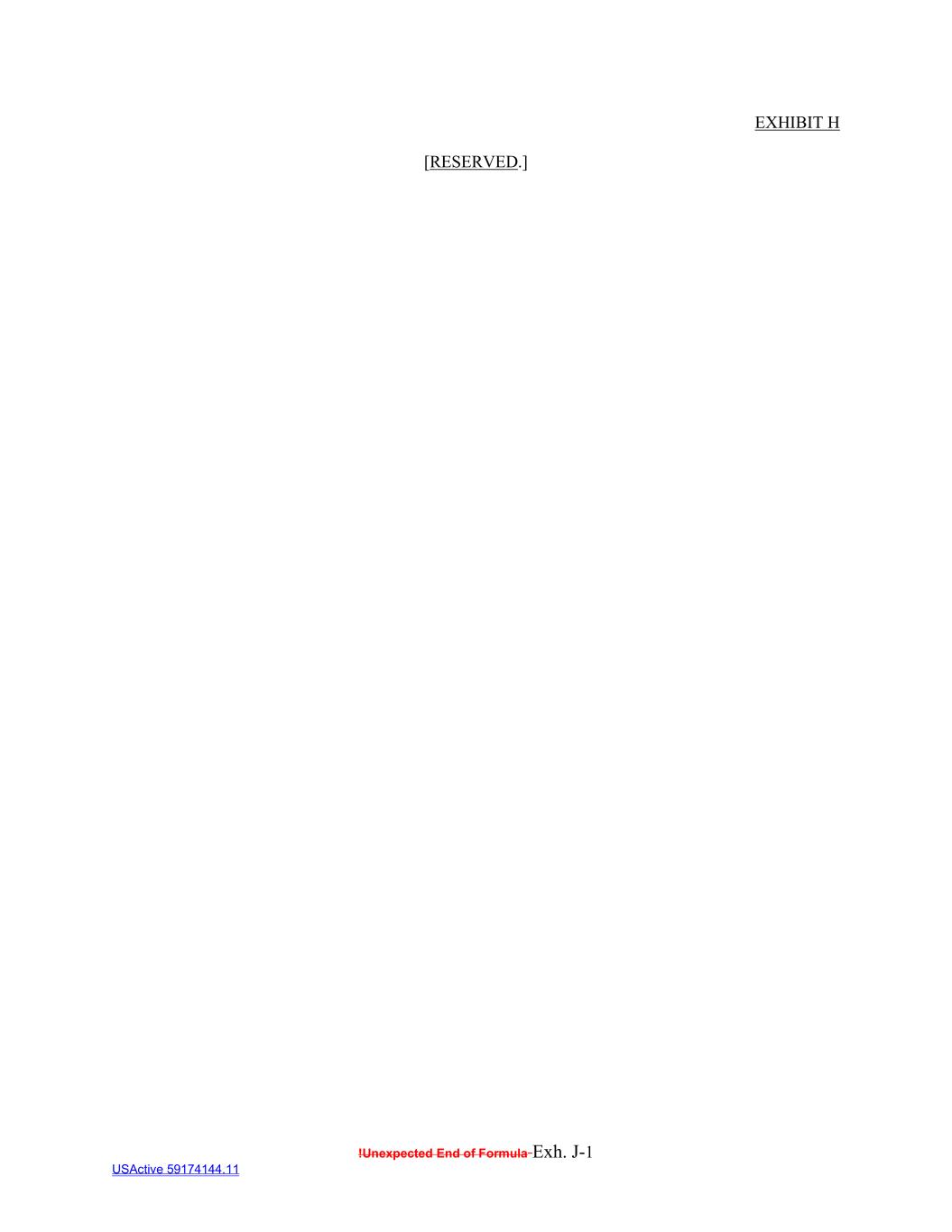 !Unexpected End of Formula Exh. J-1 USActive 59174144.11 EXHIBIT H [RESERVED.]