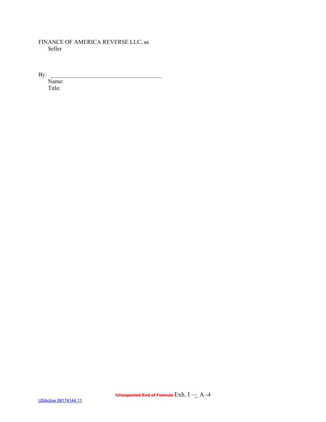 !Unexpected End of Formula Exh. I –– A -4 USActive 59174144.11 FINANCE OF AMERICA REVERSE LLC, as Seller By: ______________________________________ Name: Title: