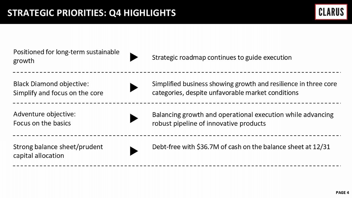 Warren Kanders EXECUTIVE CHAIRMAN Clarus TODAY’S PRESENTERS Mike Yates CFO Clarus Neil Fiske PRESIDENT Black Diamond Equipment