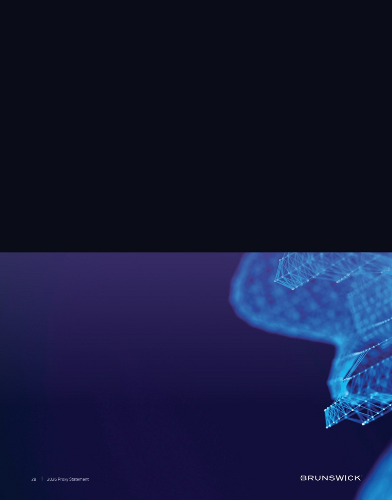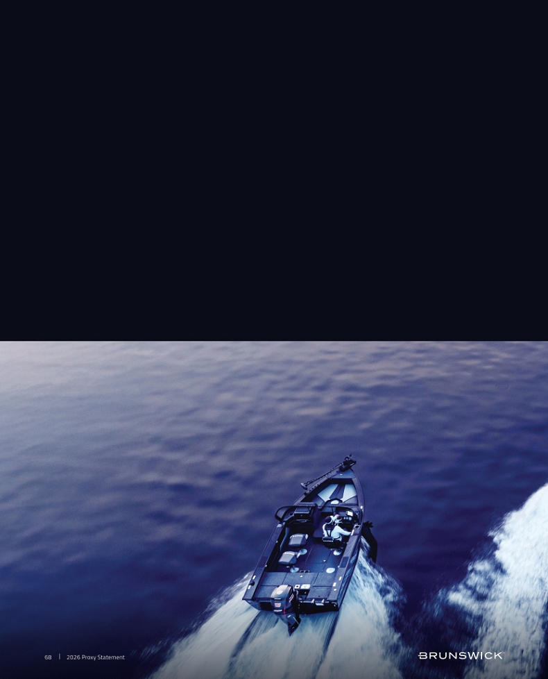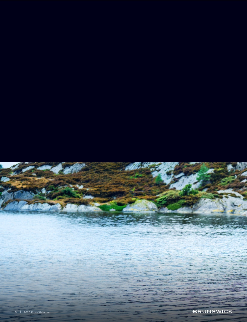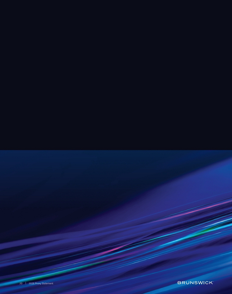 Certain statements in this Proxy Statement are forward-looking statements as defined in the Private Securities Litigation Reform Act of 1995. Forward-looking statements are based on current expectations, estimates, and projections and by their nature address matters that are, to different degrees, uncertain. Words such as “may,” “should,” “expect,” “believe,” “will,” and similar expressions are intended to identify forward-looking statements. Forward-looking statements are not guarantees of future performance and involve certain risks that may cause actual results to differ materially from expectations as of the date of this Proxy Statement. These risks include, but are not limited to, those set forth in Brunswick’s Annual Report on Form 10-K for the fiscal year ended December 31, 2025 and subsequent reports filed with the Securities and Exchange Commission. Information available on our website is not incorporated into this Proxy Statement and any references to website locations are for informational purposes only.