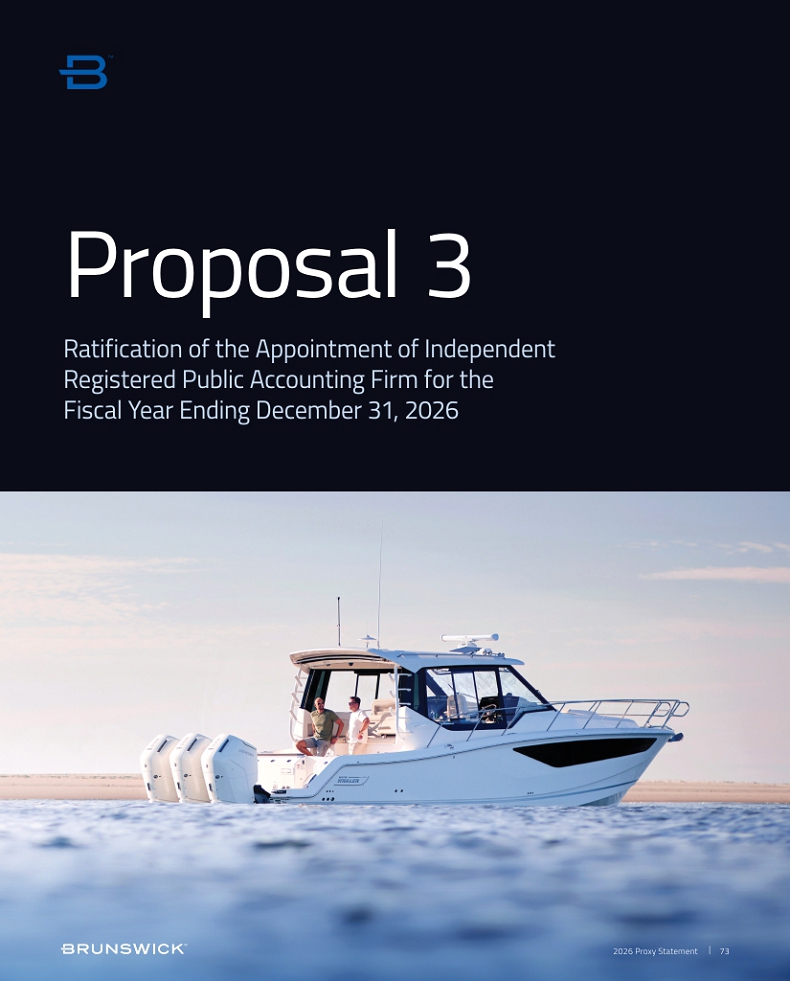 The affirmative vote of the holders of a majority of the shares having voting power and represented virtually in person or by proxy at the Annual Meeting will be required for the ratification of the Audit and Finance Committee’s appointment of Deloitte as Brunswick’s independent registered public accounting firm for the fiscal year ending December 31, 2026. Because the ratification of the independent registered public accounting firm requires a majority of the shares having voting power and represented at the Annual Meeting, abstentions will have the same effect as votes against ratification. Because we expect that brokers will have discretionary authority to vote on this proposal, we do not expect any broker non-votes.