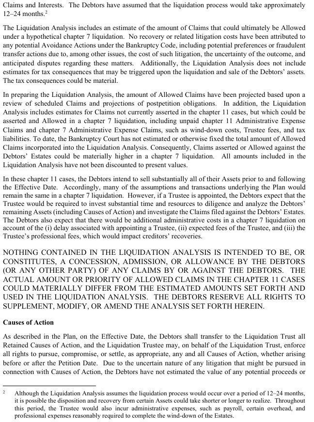 and Disclosure Statement, (iii) notice of the Holders’ non-voting status, and (iv) information about how to obtain copies of the Disclosure Statement and Plan. In addition, the Notice of Non-Voting Status contains the full text of the