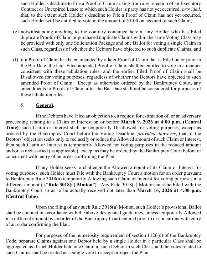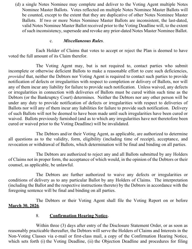 THE DEADLINE TO ACCEPT OR REJECT THE PLAN IS 4:00 P.M. (CENTRAL TIME) ON MARCH 23, 2026 (THE “VOTING DEADLINE”), UNLESS EXTENDED BY THE DEBTORS IN WRITING.