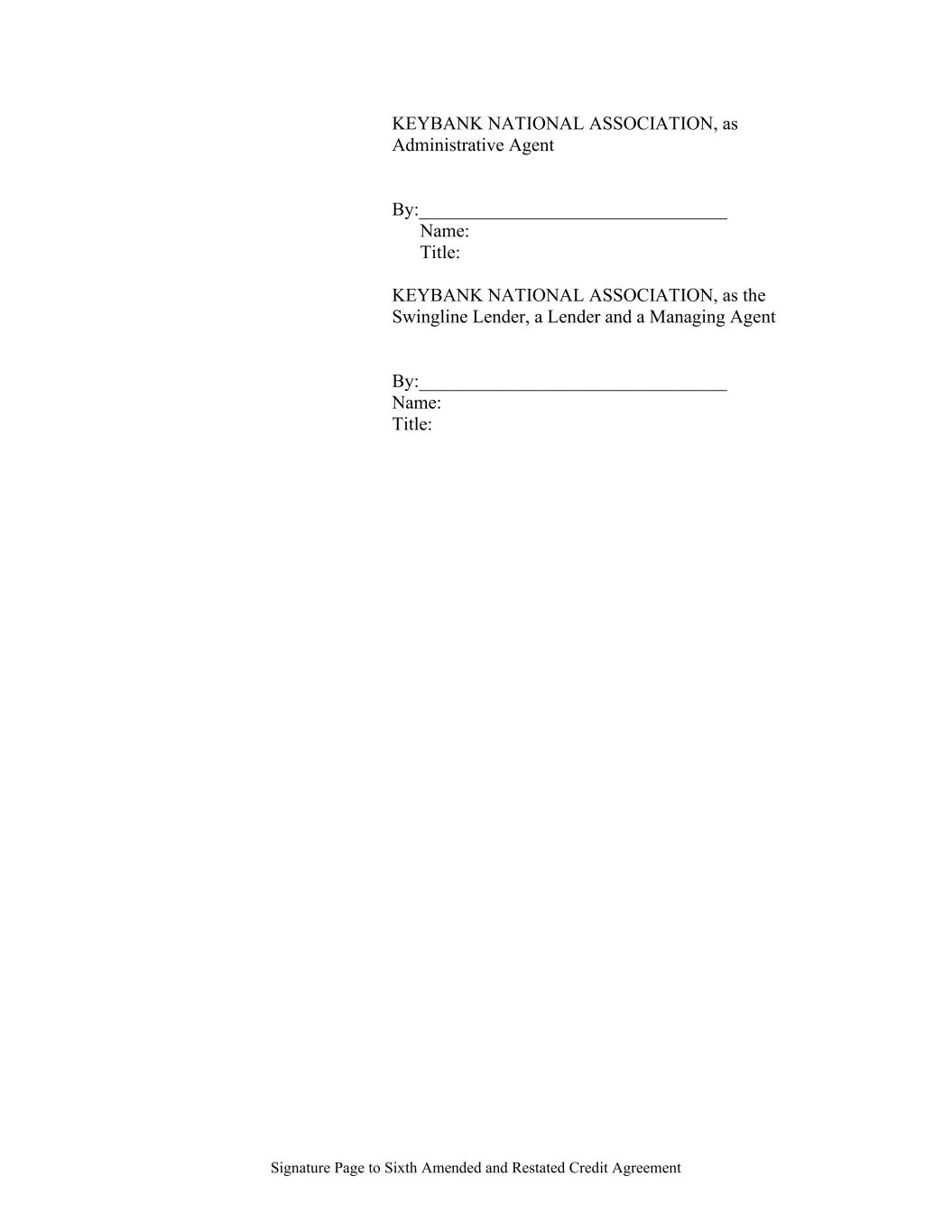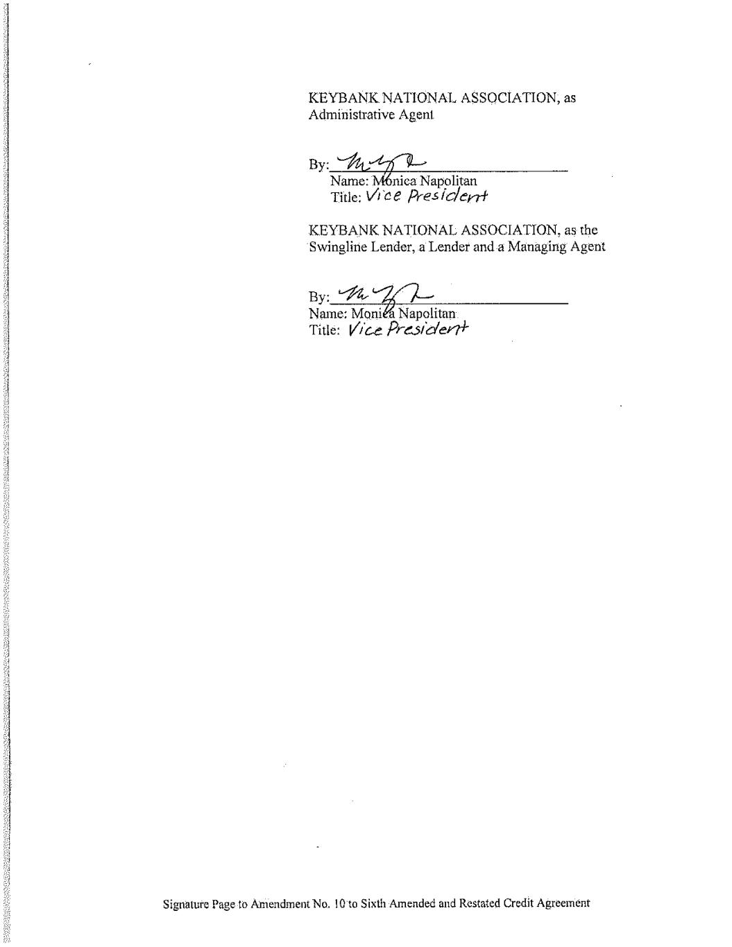 Signature Page to Sixth Amended and Restated Credit Agreement KEYBANK NATIONAL ASSOCIATION, as Administrative Agent By:_________________________________ Name: Title: KEYBANK NATIONAL ASSOCIATION, as the Swingline Lender, a Lender and a Managing Agent By:_________________________________ Name: Title: