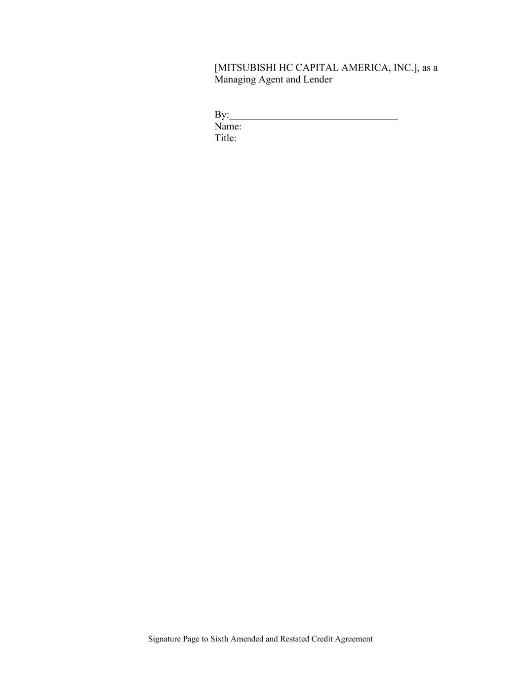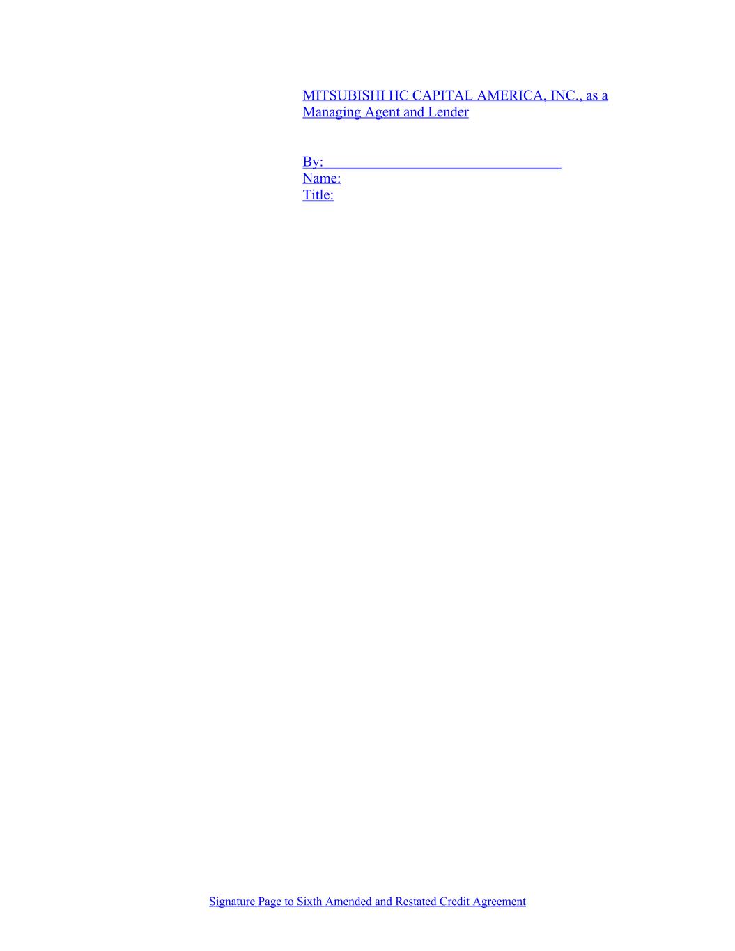 Signature Page to Sixth Amended and Restated Credit Agreement [MITSUBISHI HC CAPITAL AMERICA, INC.], as a Managing Agent and Lender By:_________________________________ Name: Title: