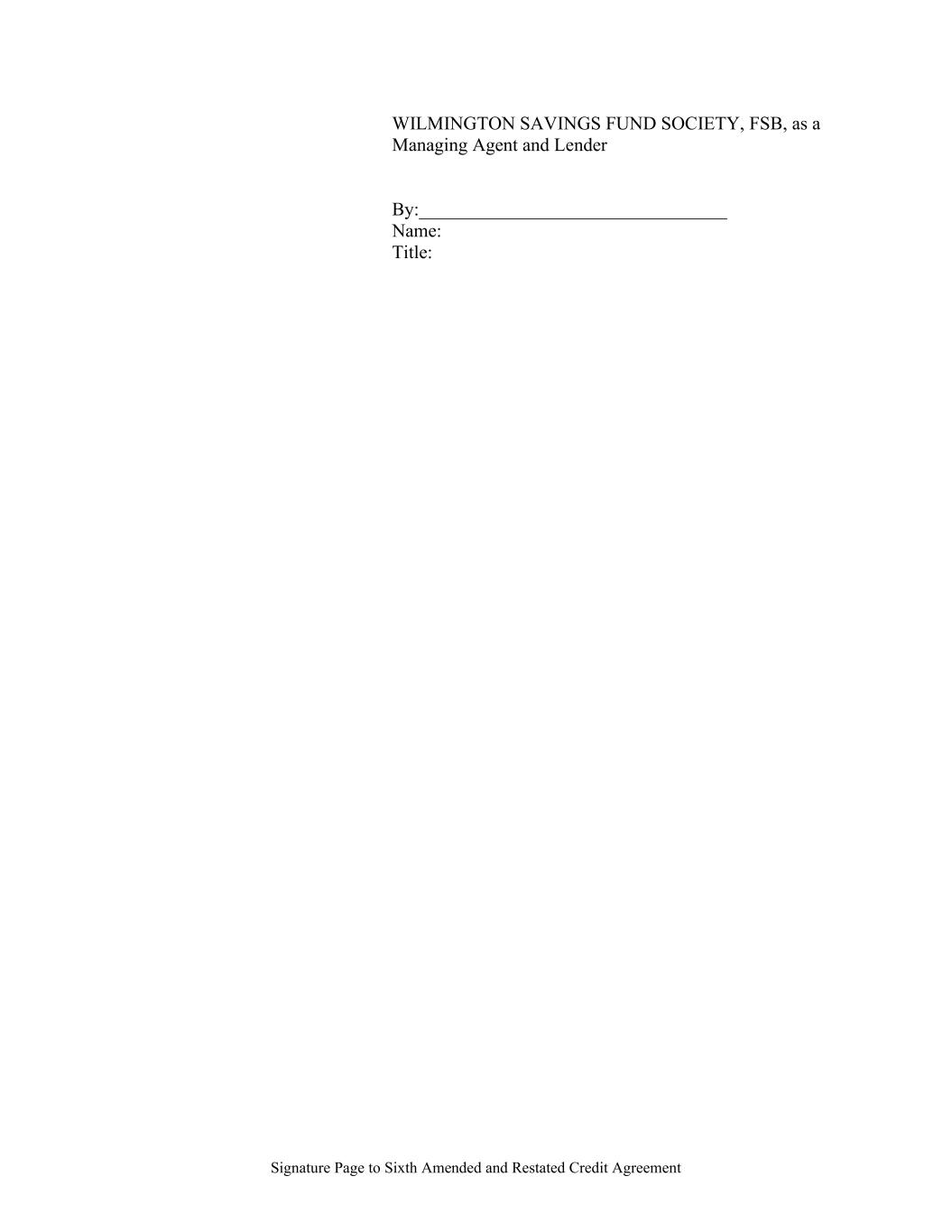Signature Page to Sixth Amended and Restated Credit Agreement WILMINGTON SAVINGS FUND SOCIETY, FSB, as a Managing Agent and Lender By:_________________________________ Name: Title: