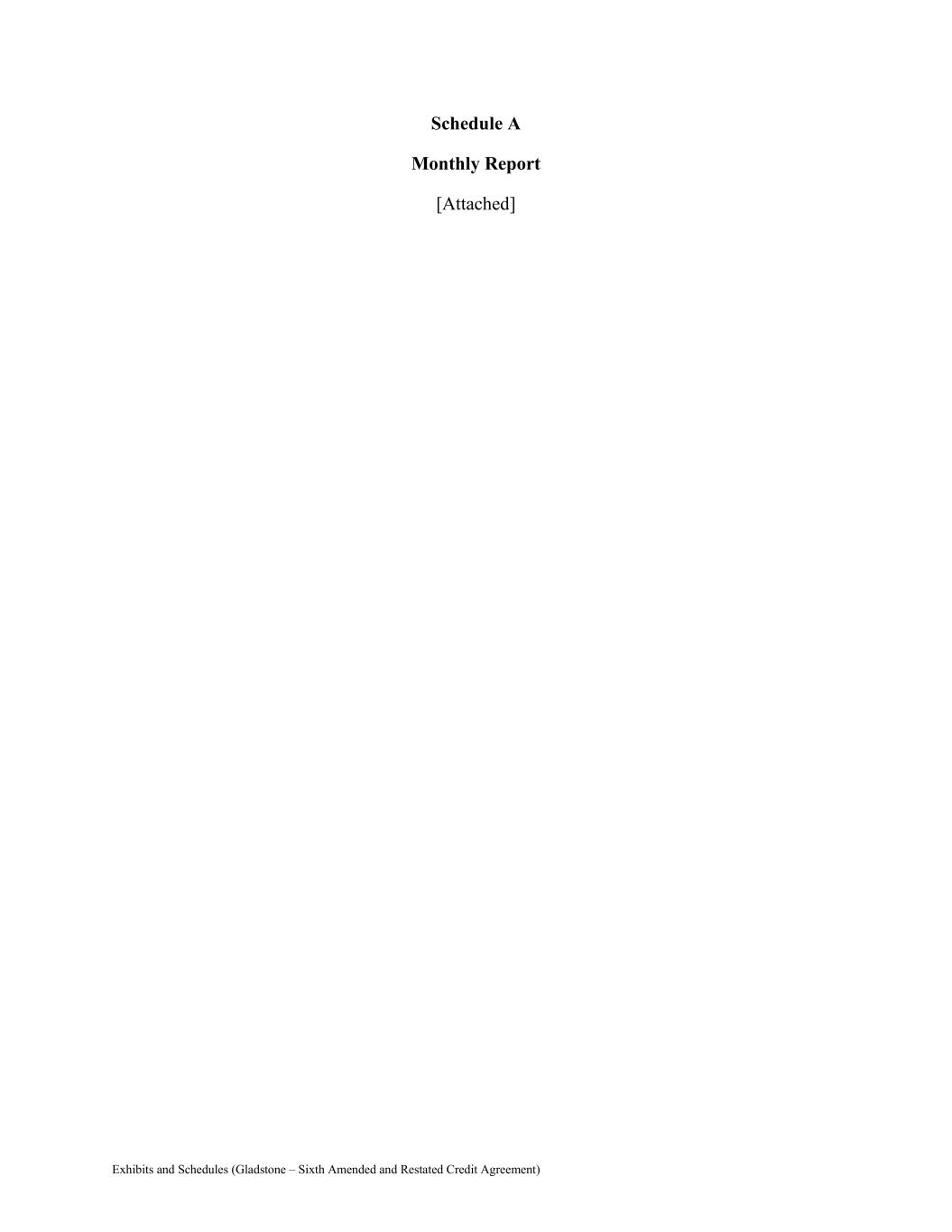 Exhibits and Schedules (Gladstone – Sixth Amended and Restated Credit Agreement) Schedule A Monthly Report [Attached]