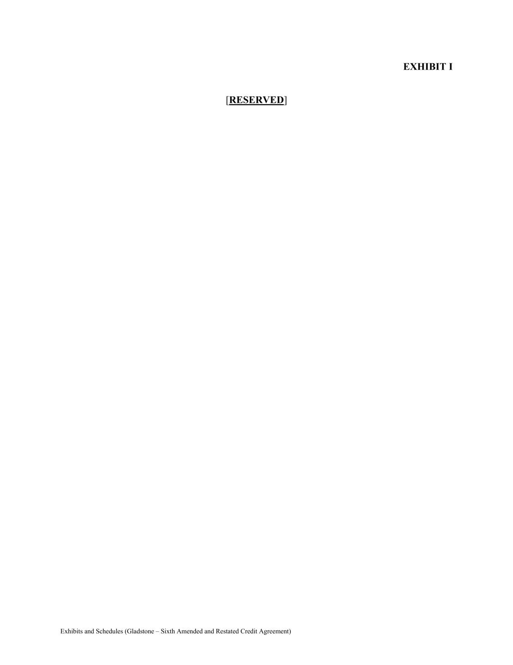 Exhibits and Schedules (Gladstone – Sixth Amended and Restated Credit Agreement) EXHIBIT I [RESERVED]