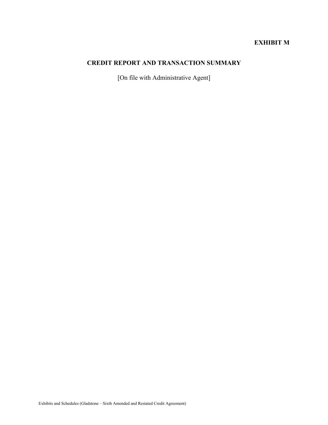 Exhibits and Schedules (Gladstone – Sixth Amended and Restated Credit Agreement) EXHIBIT M CREDIT REPORT AND TRANSACTION SUMMARY [On file with Administrative Agent]