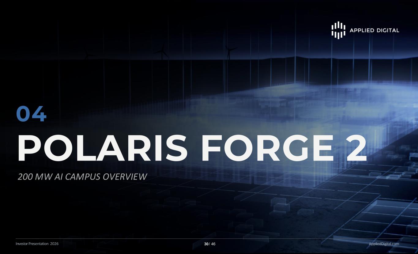 POLARIS FORGE 2 POLARIS FORGE 2 AppliedDigital.comInvestor Presentation 2026 30 / 46 04 200 MW AI CAMPUS OVERVIEW