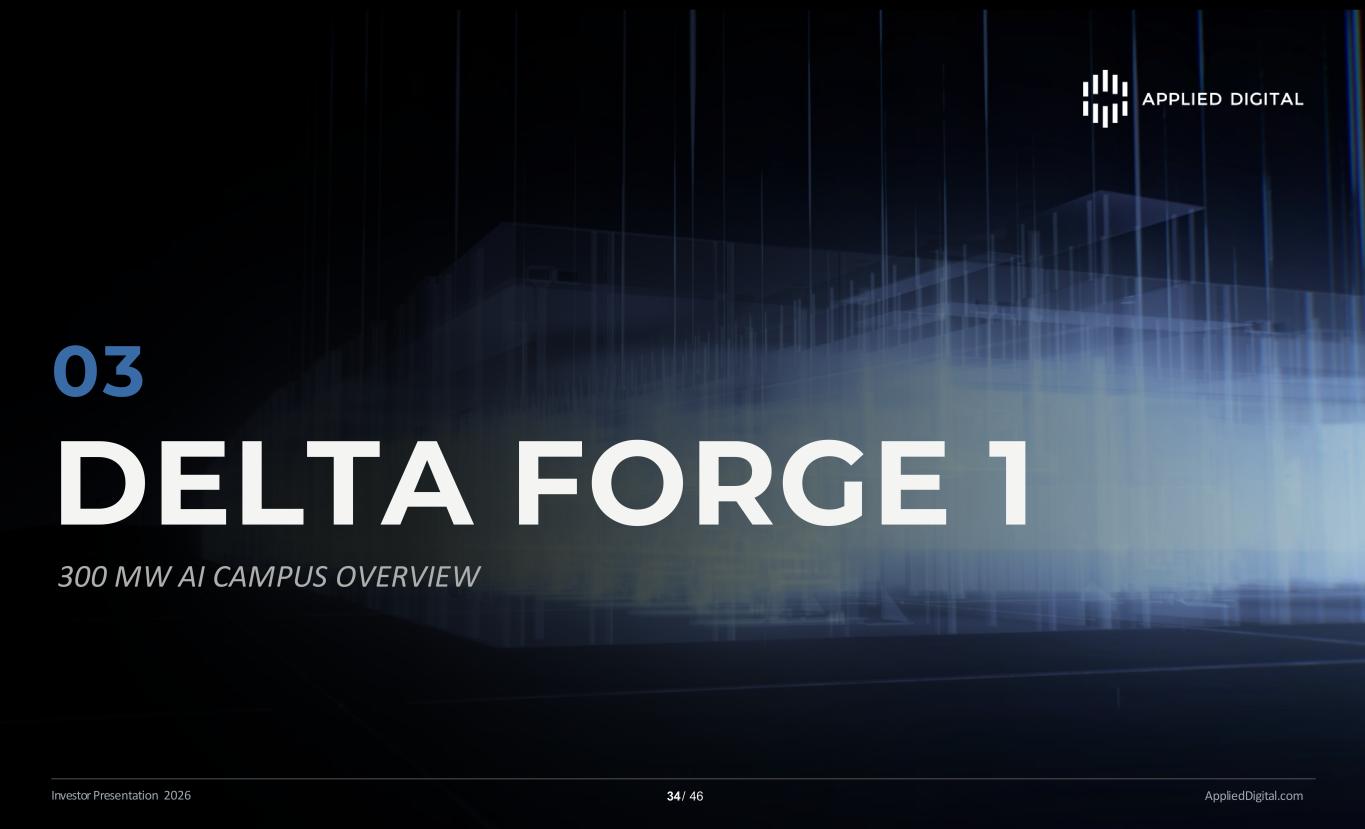 DELTA FORGE 1 DELTA FORGE 1 AppliedDigital.comInvestor Presentation 2026 34 / 46 03 300 MW AI CAMPUS OVERVIEW