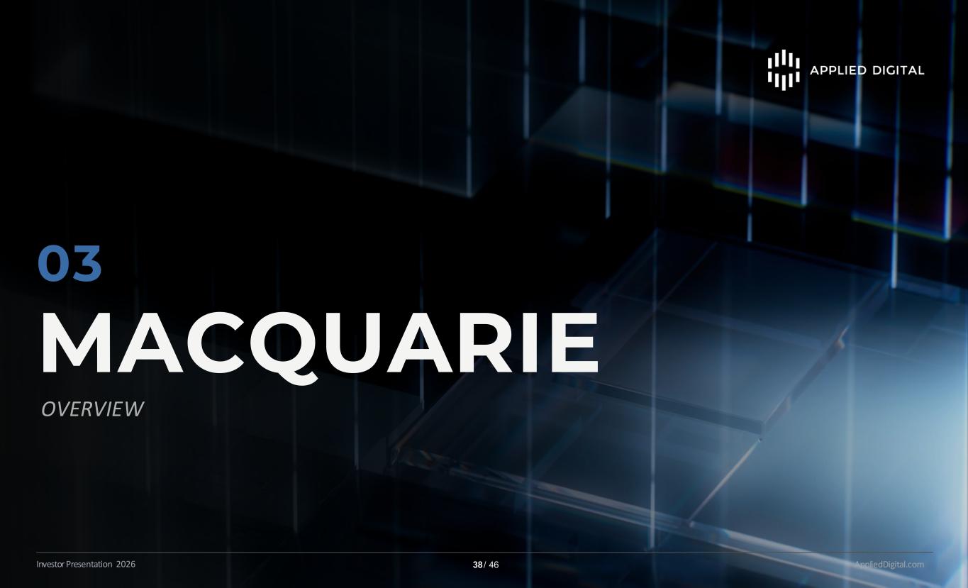 MACQUARIE MACQUARIE AppliedDigital.comInvestor Presentation 2026 38 / 46 03 OVERVIEW