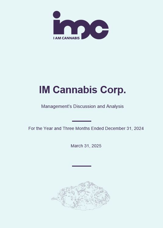 This Management’s Discussion and Analysis (“MD&A”) reports on the consolidated financial condition and operating results of IM Cannabis for the year and