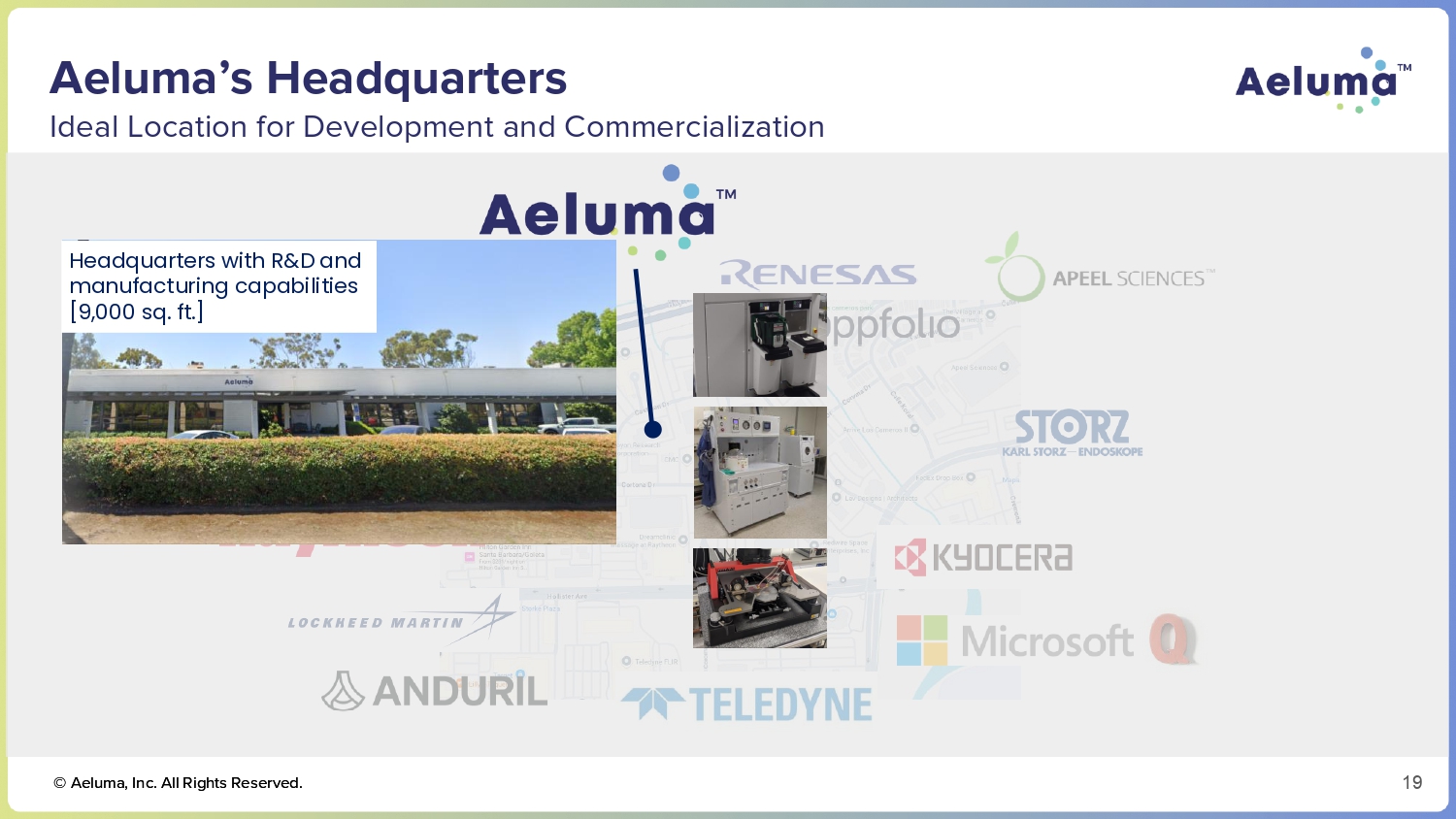 Aeluma’s Headquarters Ideal Location for Development and Commercialization © Aeluma, Inc. All Rights Reserved. 18