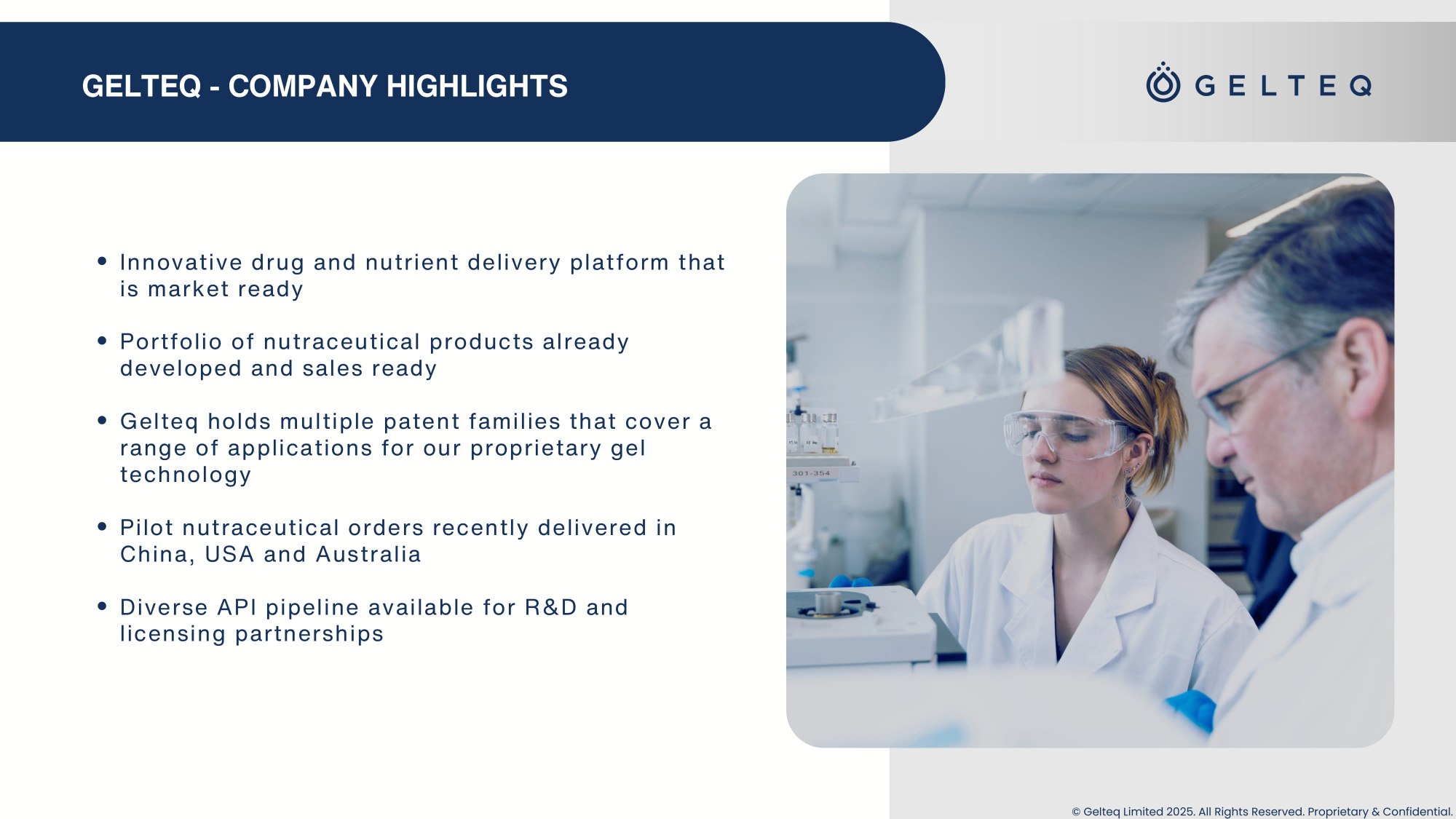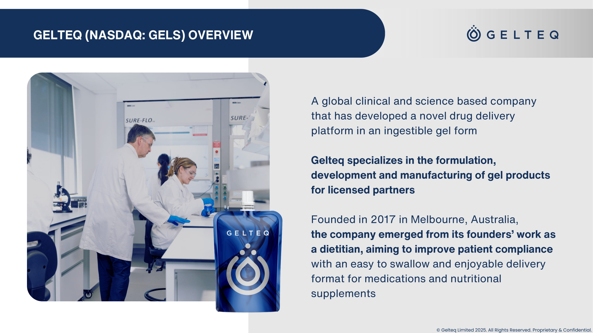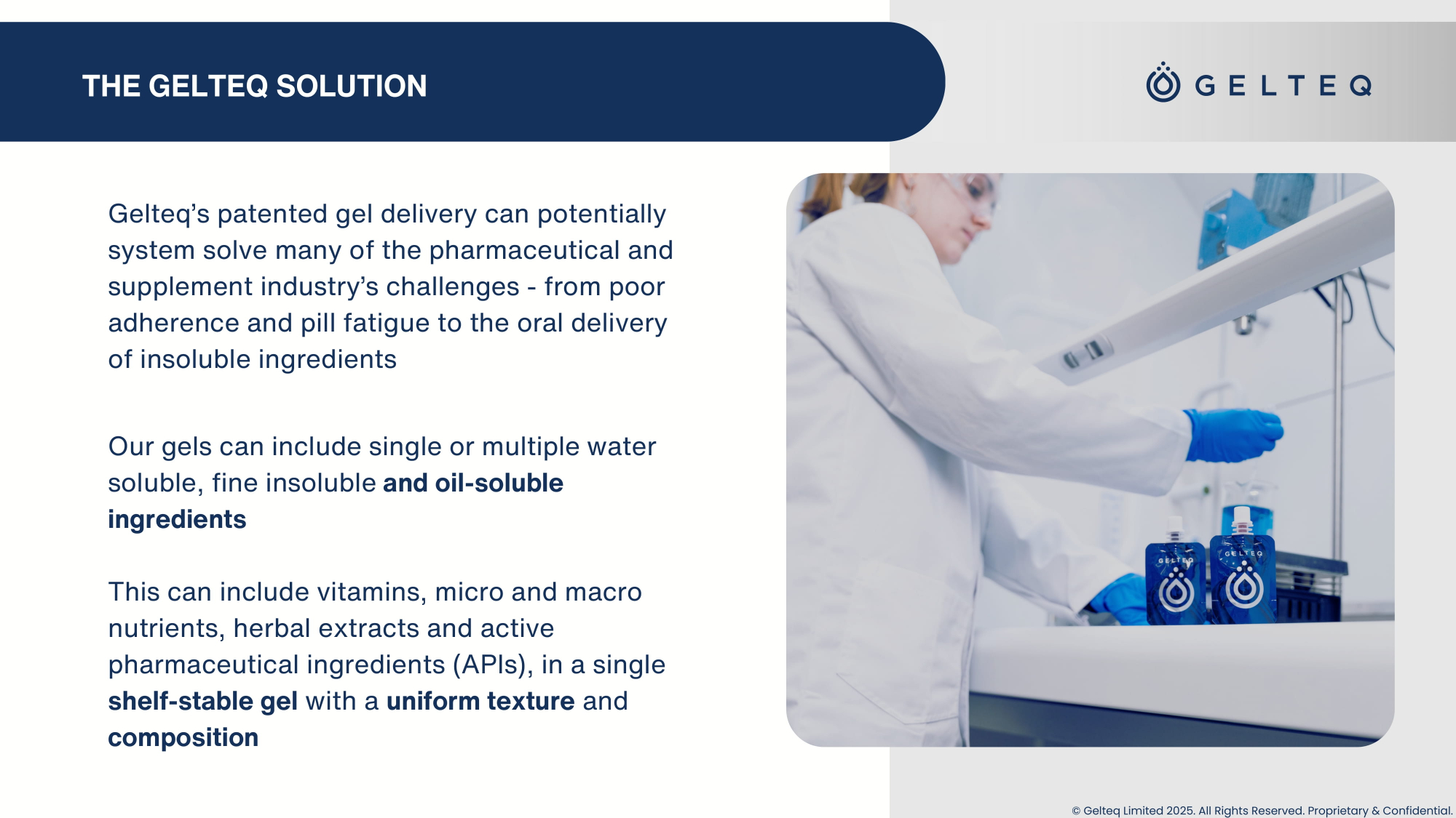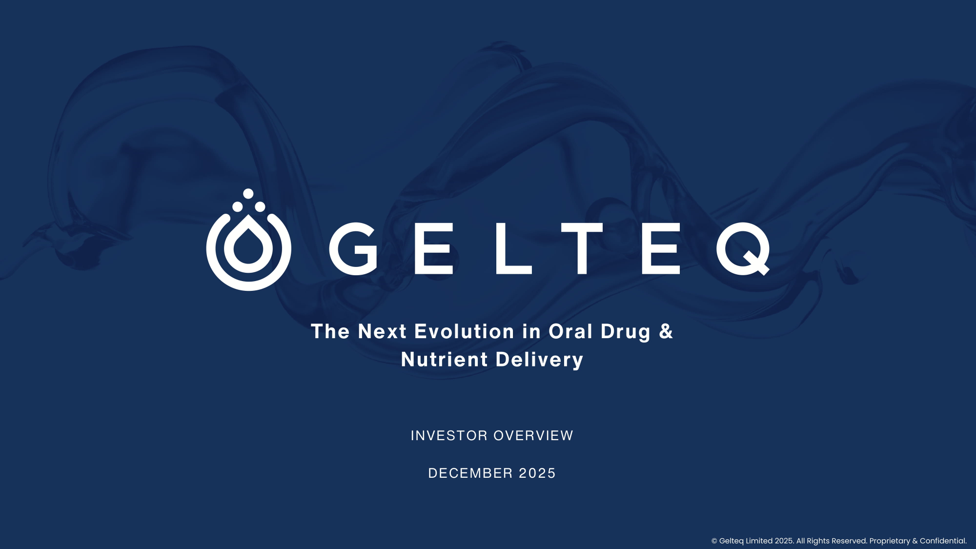 The Ne xt E v ol ut ion in O r al D ru g & N utr ien t Deli v e ry © Gelteq Limited 2025. All Rights Reserved. Proprietary & Confidential. INVESTOR OVERVIEW DECEMBER 2025