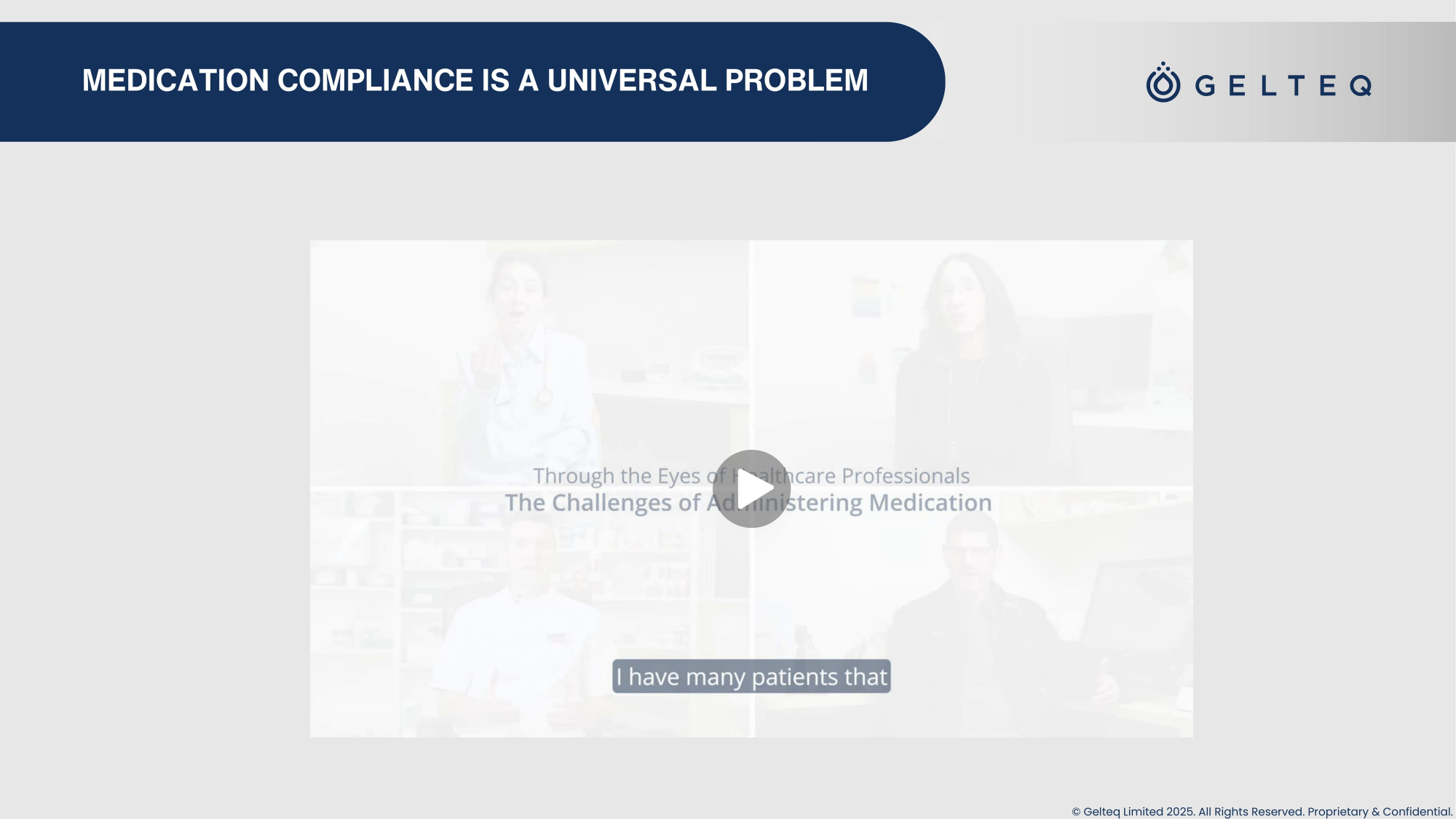 MEDICATION COMPLIANCE IS A UNIVERSAL PROBLEM © Gelteq Limited 2025. All Rights Reserved. Proprietary & Confidential.