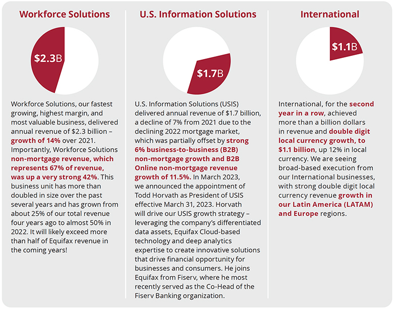 | * | Based on actual and estimated results from January-December 2022; Sources: Data and analytics captured by Equifax business units (U.S. Information Solutions, Workforce Solutions, and International) |