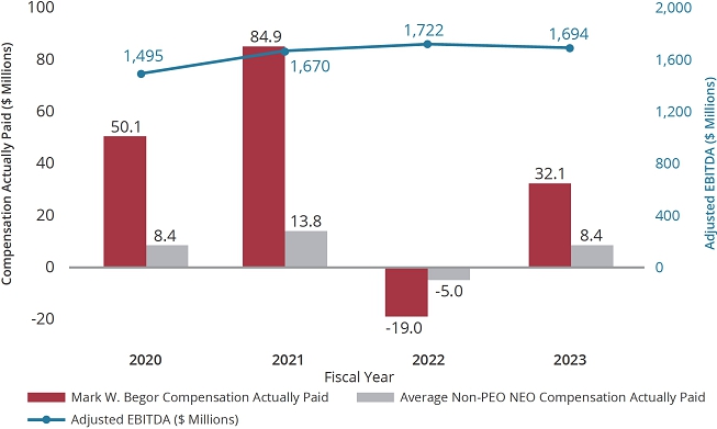 (5) | For the year ended December 31, 2023, we recorded $103.2 million ($79.5 million, net of tax) for acquisition-related costs other than acquisition amortization. For the year ended December 31, 2022, we recorded $68.2 million ($50.6 million, net of tax) for acquisition-related costs other than acquisition amortization. These costs primarily related to integration costs resulting from recent acquisition activity and were recorded in operating income. See the Notes to this reconciliation for additional detail. |