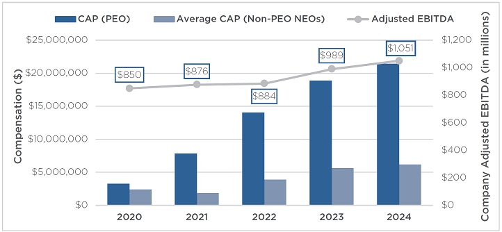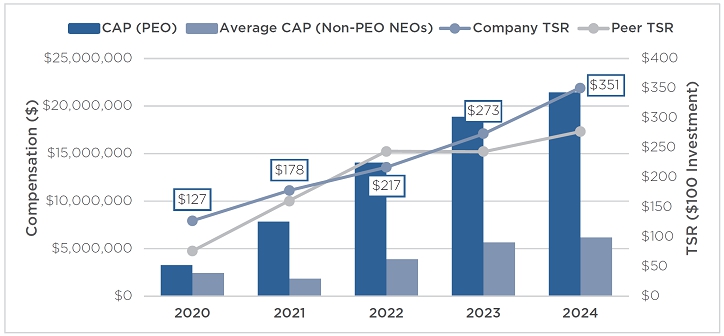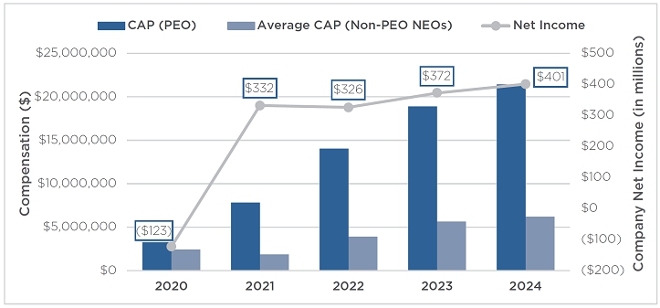 | • | Long-term incentive compensation awards were 75% time-based equity awards and 25% performance-based equity awards to our Named Executive Officers in March 2024. All long-term incentive awards vest over several years to reward sustained Company performance over time. | |