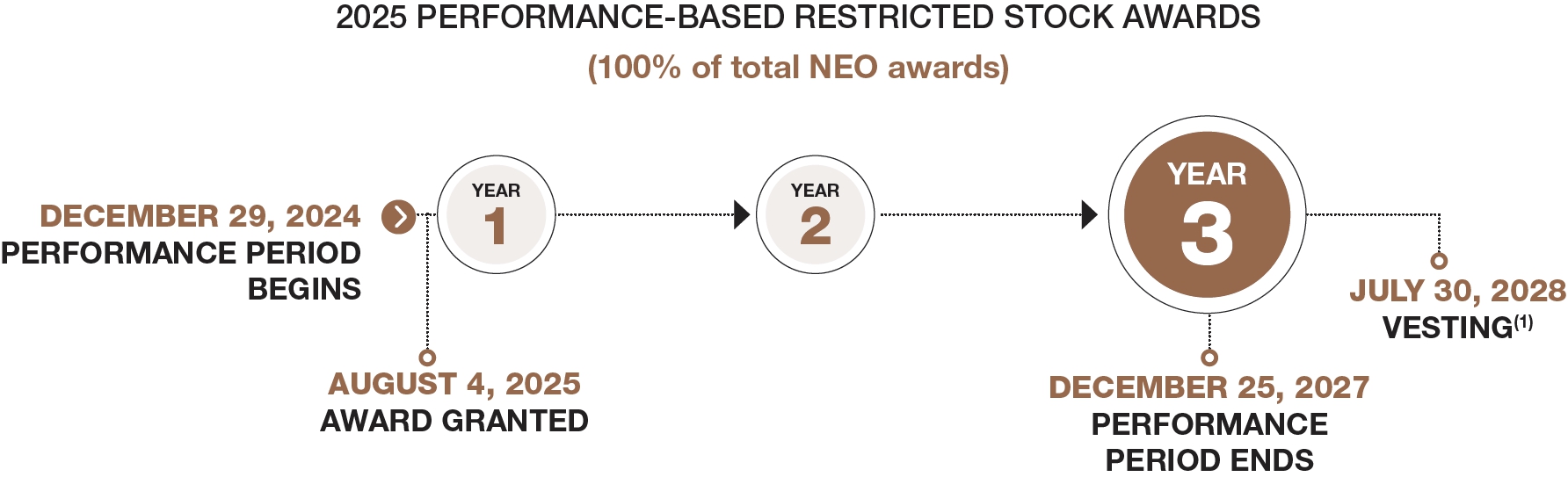 Column (f). For the relevant fiscal year, represents the cumulative total shareholder return (TSR) of the Company for the measurement periods ending on December 27, 2025, December 28, 2024, December 30, 2023, December 31, 2022 and December 25, 2021, respectively.