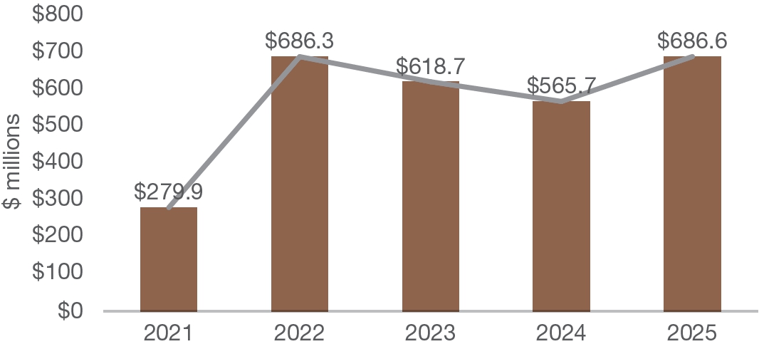 | SUMMARY OF OPERATIONS (Dollars in thousands except per share data) | 2025 ($) | 2024 ($) | 2023 ($) | 2022 ($) | 2021 ($) | ||||||||||||||