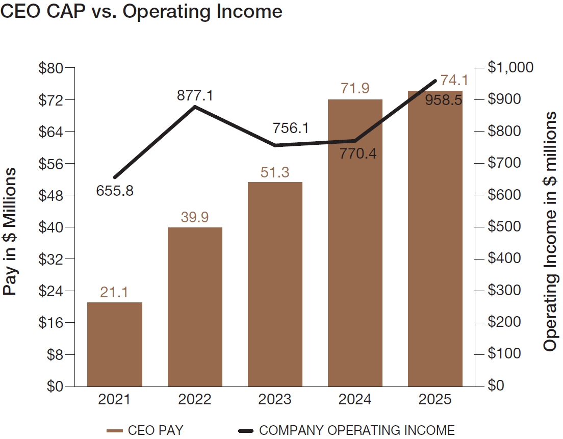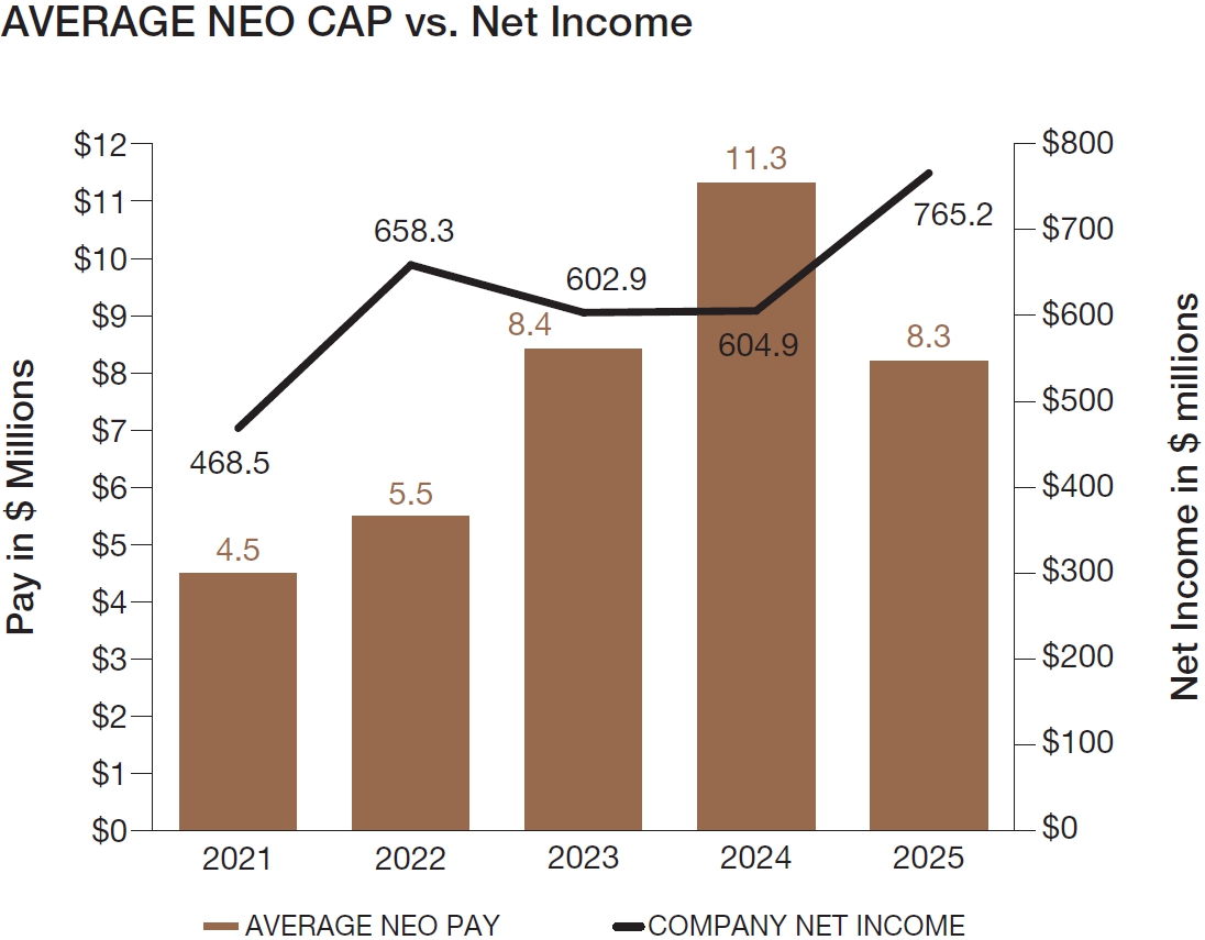 In general, we offer employees base salary, company retirement plan contributions, the opportunity to receive incentive awards for performance, and other benefits. In accordance with SEC rules, the median employee compensation provided above reflects company retirement plan contributions, incentive awards for 2025 performance and other benefits, but does not reflect benefits relating to group life or health plans generally available to all salaried employees.