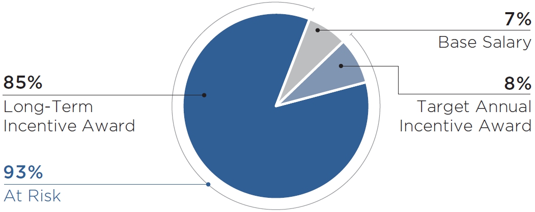 | • | Long-term incentive compensation awards were 75% time-based equity awards and 25% performance-based equity awards to our Named Executive Officers in March 2025. All long-term incentive awards vest over several years to reward sustained Company performance over time. | |