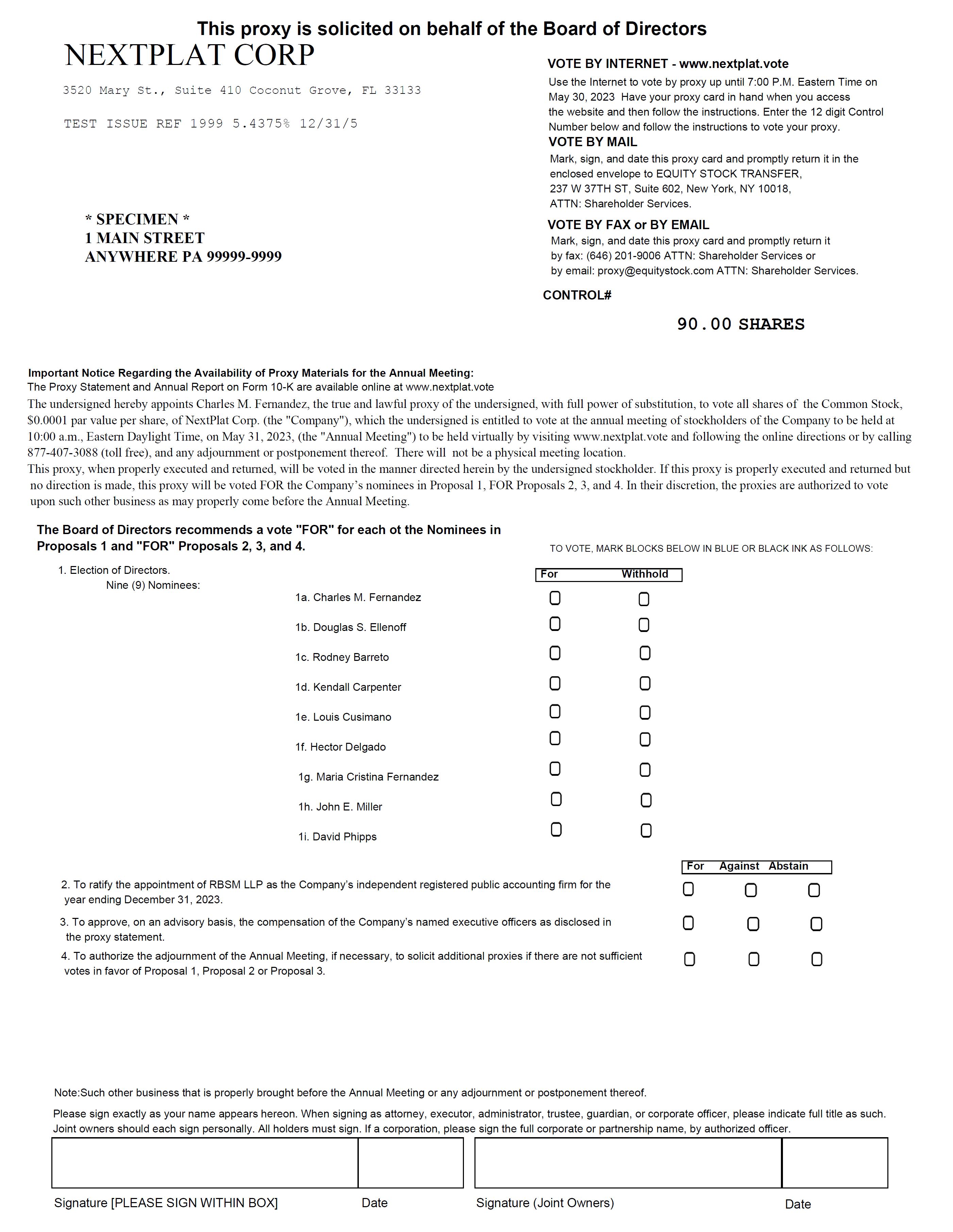 | 1. | By Internet. The website address for Internet voting is www.nextplat.vote. | |