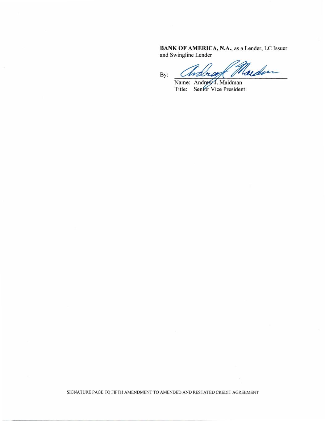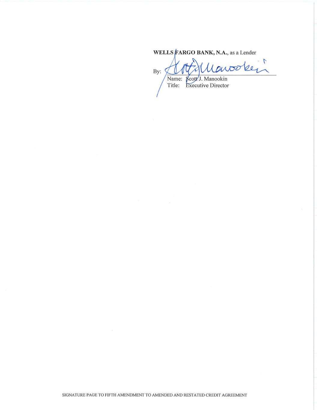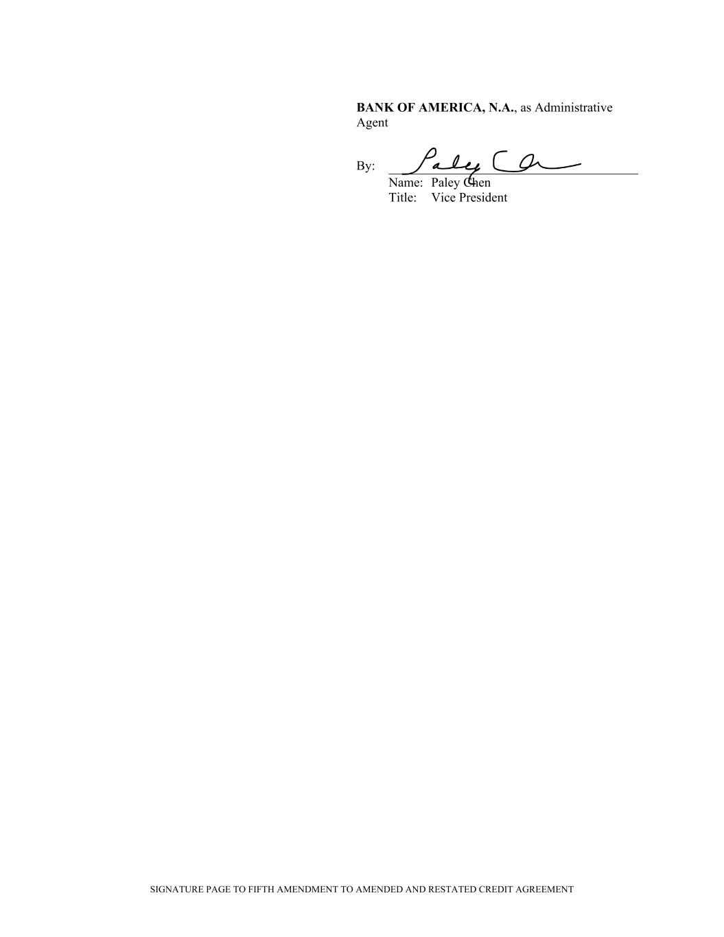 SIGNATURE PAGE TO FIFTH AMENDMENT TO AMENDED AND RESTATED CREDIT AGREEMENT BANK OF AMERICA, N.A., as Administrative Agent By: Name: Paley Chen Title: Vice President