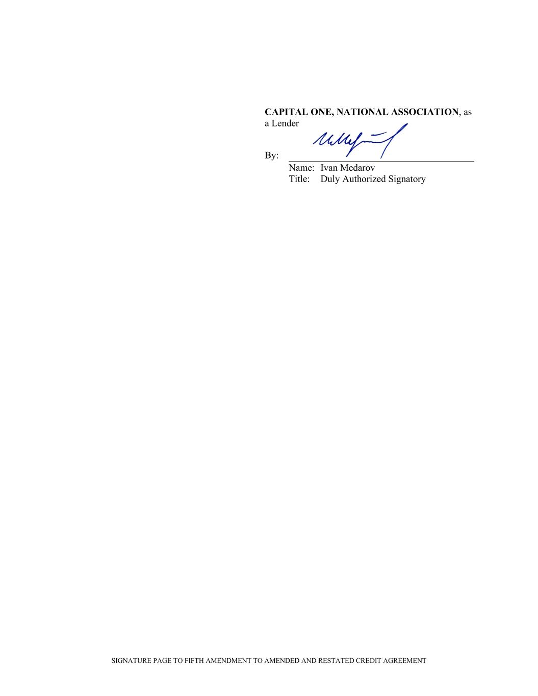 SIGNATURE PAGE TO FIFTH AMENDMENT TO AMENDED AND RESTATED CREDIT AGREEMENT CAPITAL ONE, NATIONAL ASSOCIATION, as a Lender By: Name: Ivan Medarov Title: Duly Authorized Signatory