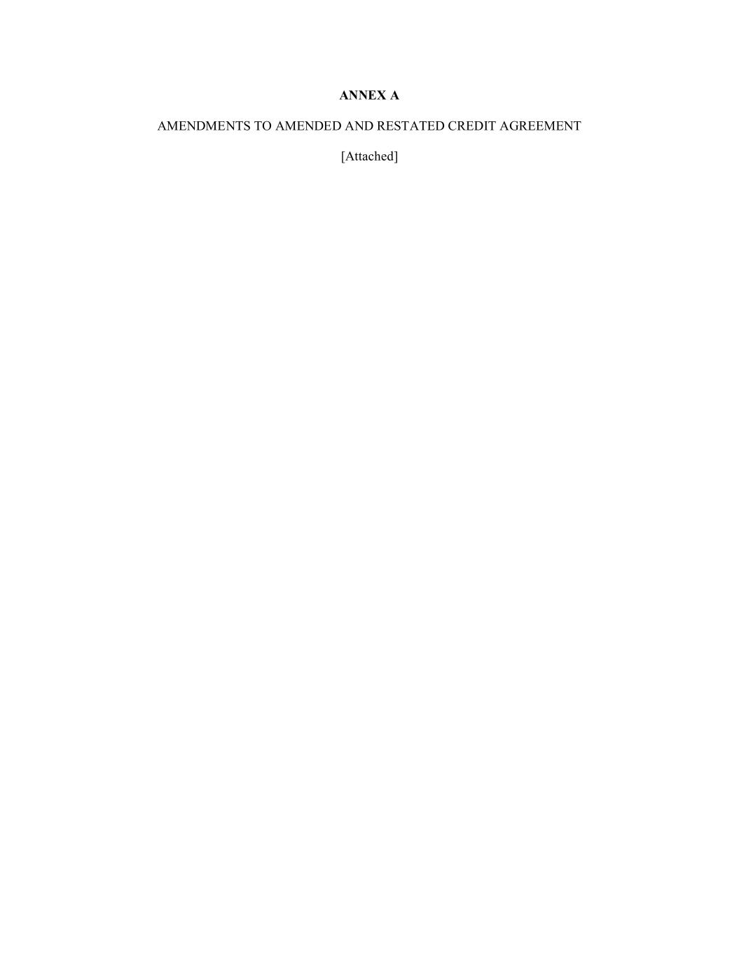 ANNEX A AMENDMENTS TO AMENDED AND RESTATED CREDIT AGREEMENT [Attached]