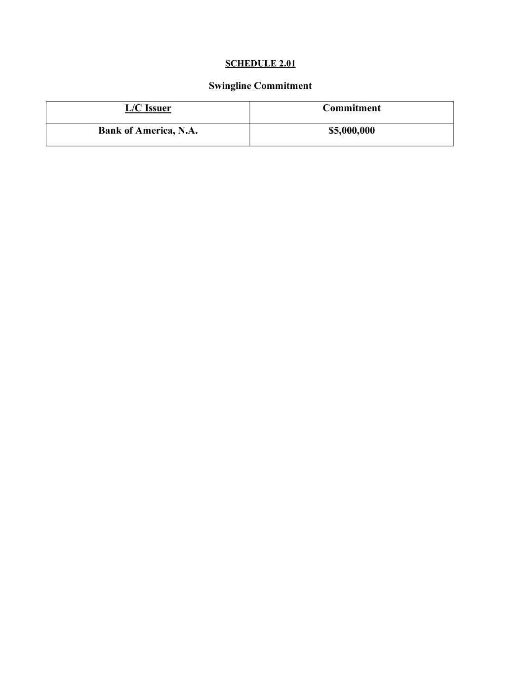 SCHEDULE 2.01 Swingline Commitment L/C Issuer Commitment Bank of America, N.A. $5,000,000